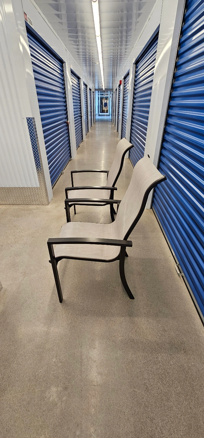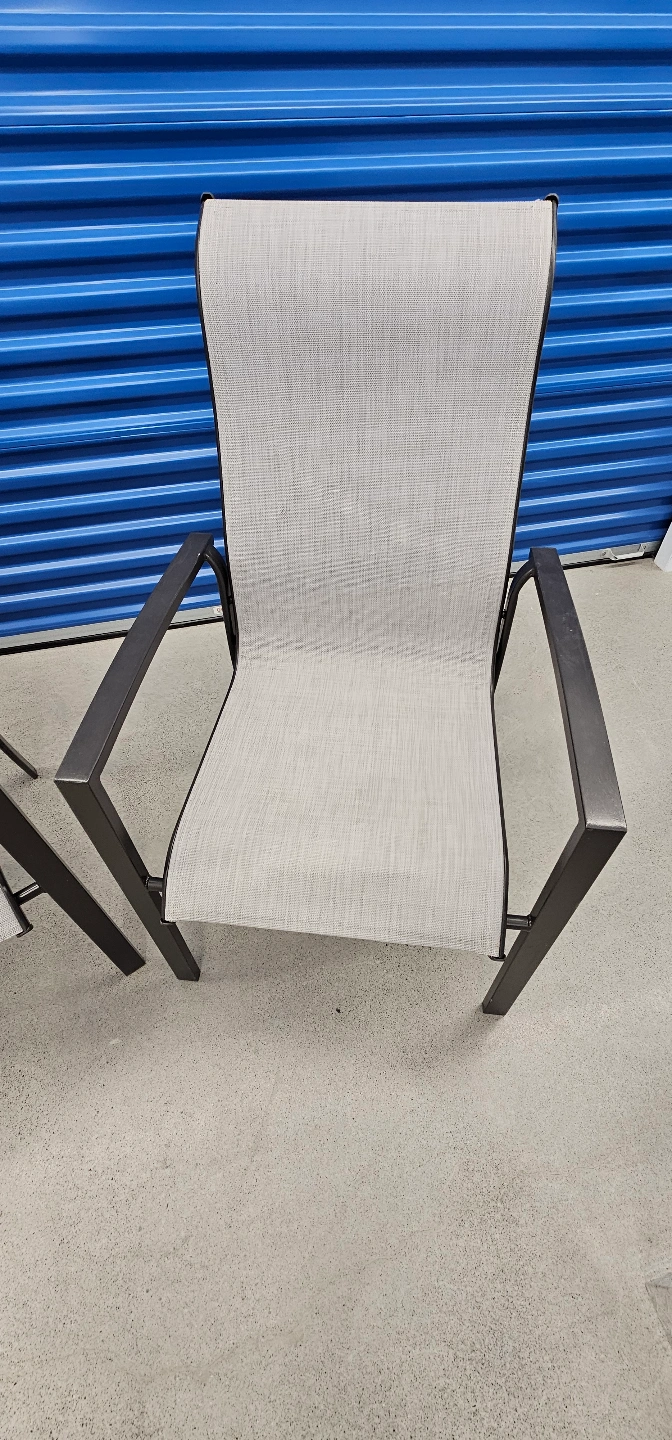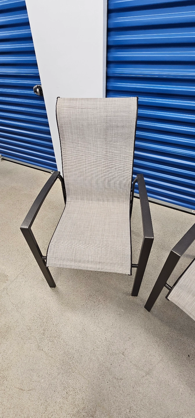 Giving away a pair of sleek outdoor patio chairs with black frames and neutral mesh backs. Minimalist and sturdy — perfect for a balcony or backyard setup.