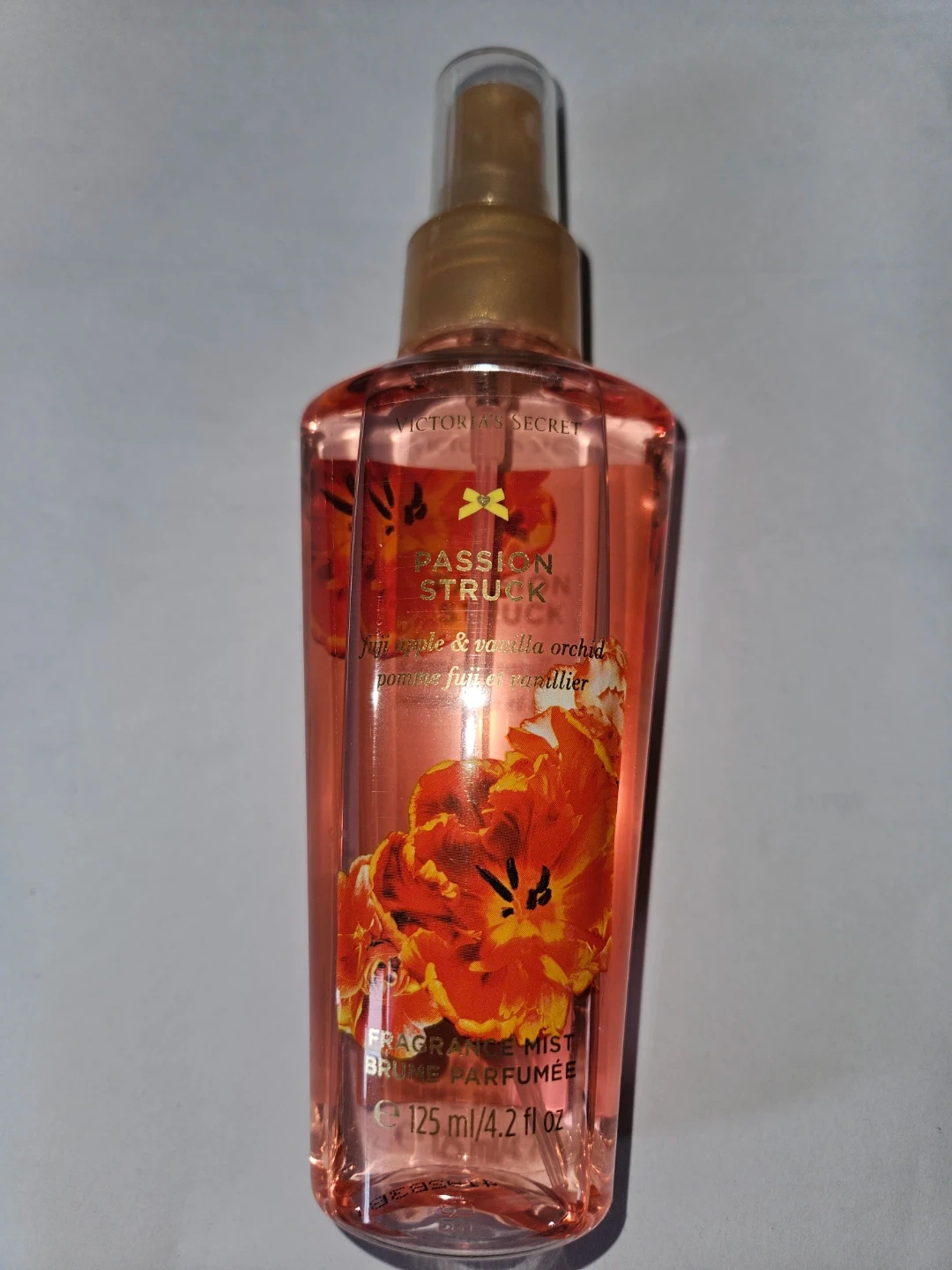 Victoria's Secret Passion Struck fragrance mist. Features fuji apple & vanilla orchid notes. This mist is 125 ml / 4.2 fl oz.
