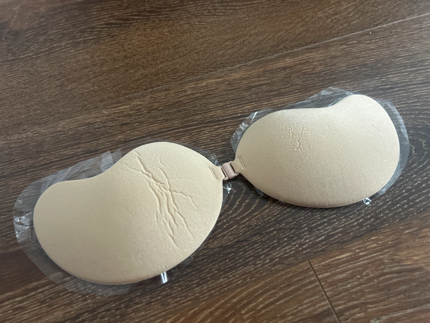 Nude adhesive strapless bra. This bra provides a seamless look under clothing. It's designed for comfort and support without straps. Perfect for backless outfits!