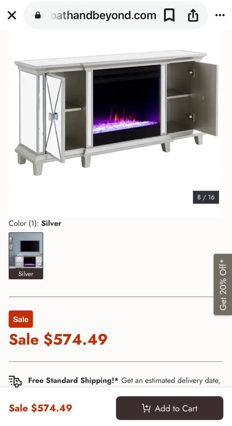 Selling a mirrored fireplace TV stand. It measures 58 inches in length, 27 inches in height, and 15 inches in depth. It's a stylish addition to any living room!
