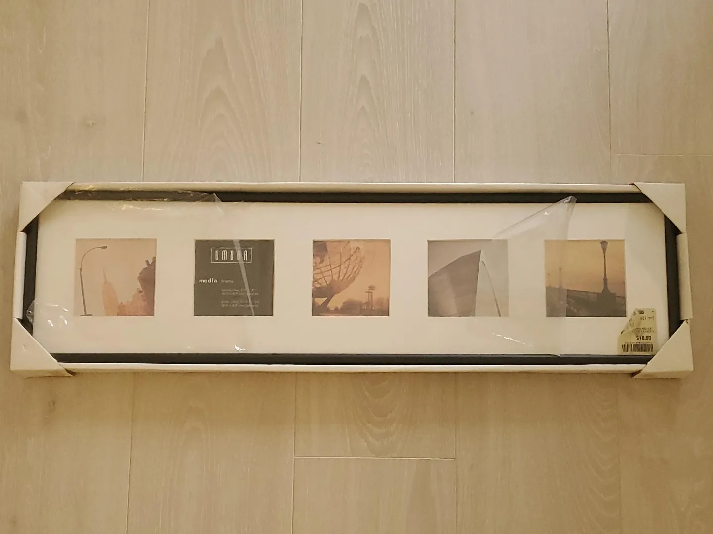 Selling a brand new Umbra Media Frame! It's designed to hold five 3.5" x 3.5" (8.9 x 8.9 cm) photos. Perfect for displaying your favourite memories in a stylish way!