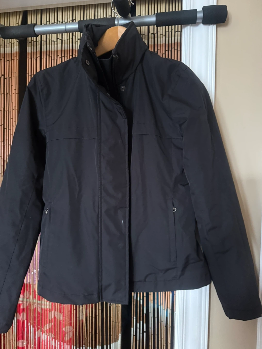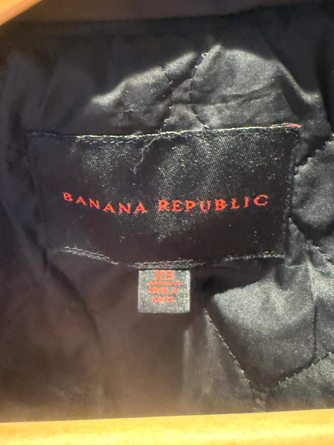 Selling a Banana Republic jacket in size XS. It's a sleek black colour and made with 100% polyester for the shell, lining and filler. Perfect for layering!