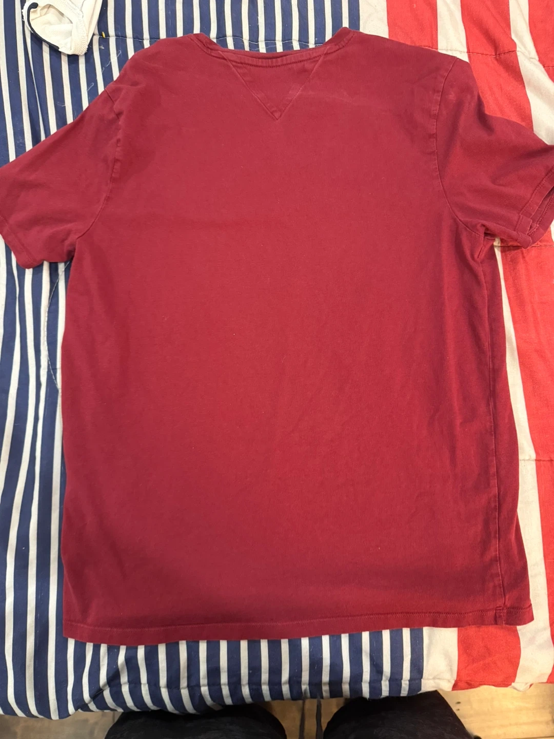A classic red Tommy Hilfiger t-shirt! It's in great condition and ready for a new home. The shirt features the iconic Tommy Hilfiger logo across the chest. Perfect for casual wear or layering