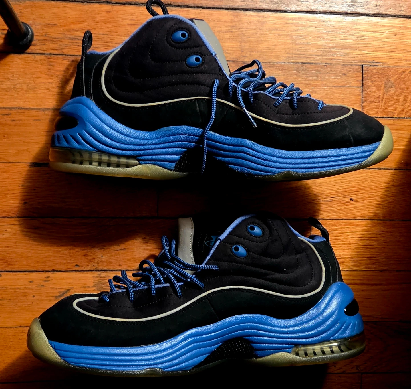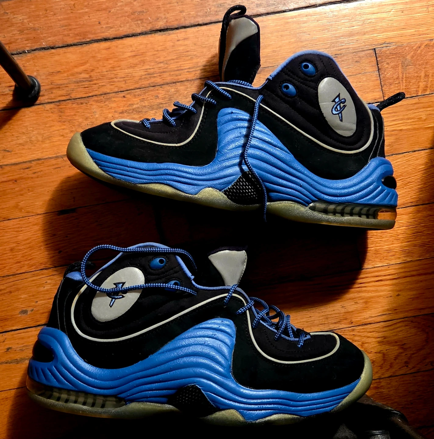 Selling a pair of Nike Air Max Penny 1s in a cool black and blue colorway! These shoes are in great condition and ready for a new owner. They feature the iconic Penny Hardaway logo on the side and a comfortable Air Max sole. No box included. Stored in airtight bag for storage purposes.