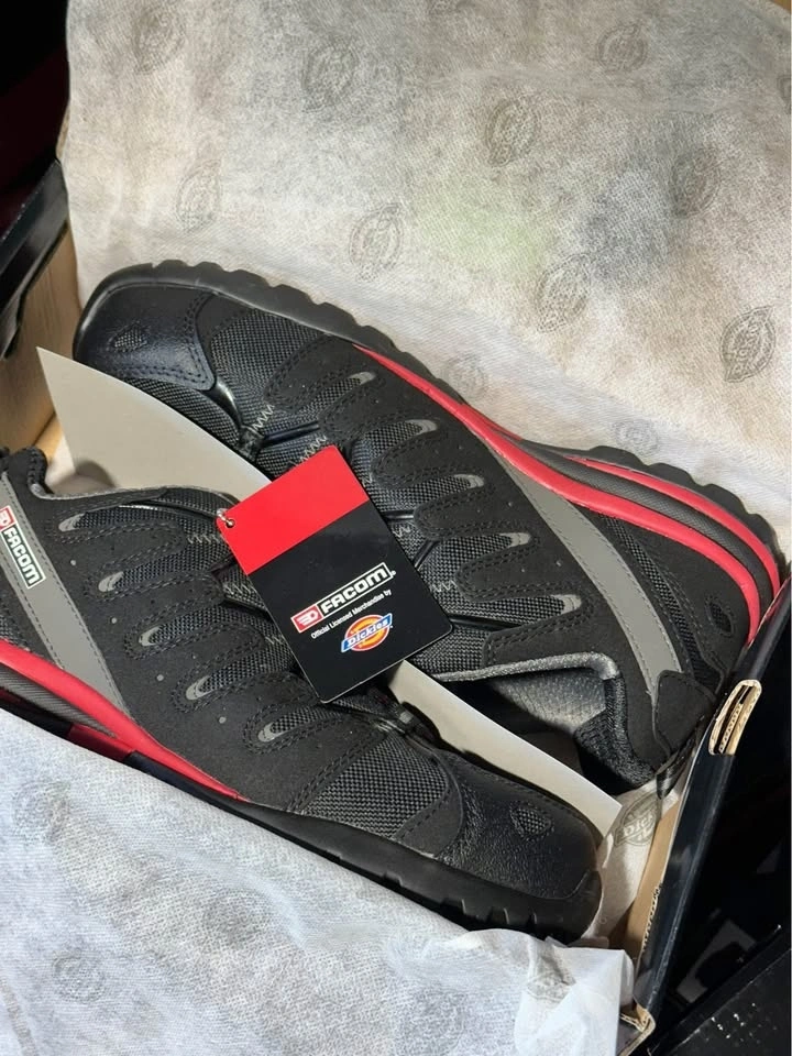 Facom By Dickies - VP. HITREK Bk, Black/Red Men's Steel-Toe. UK Size 10, 44 EUR. Estimated MSRP: $190. Located near Major Mackenzie and Weston Rd. Final sale.