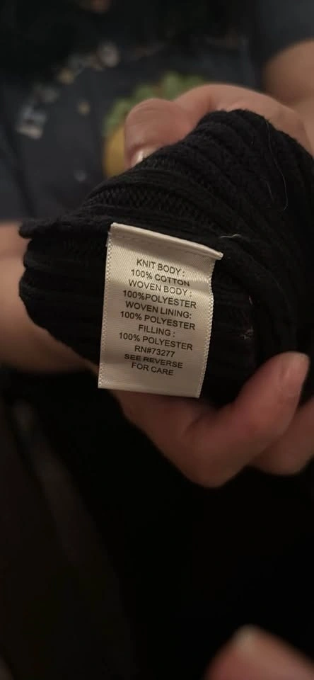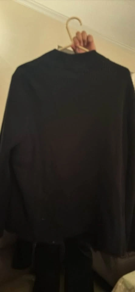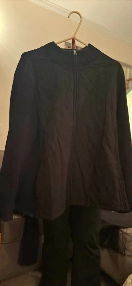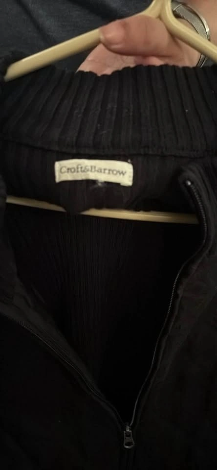 Comfy Croft & Barrow black full zip sweater. Has a mock neck and ribbed details. Knit body is 100% cotton, and woven parts, lining, and filling are 100% polyester. Great for layering! Pickup/ Cash only. SE Vancouver. Victoria Drive & E 61 Ave.