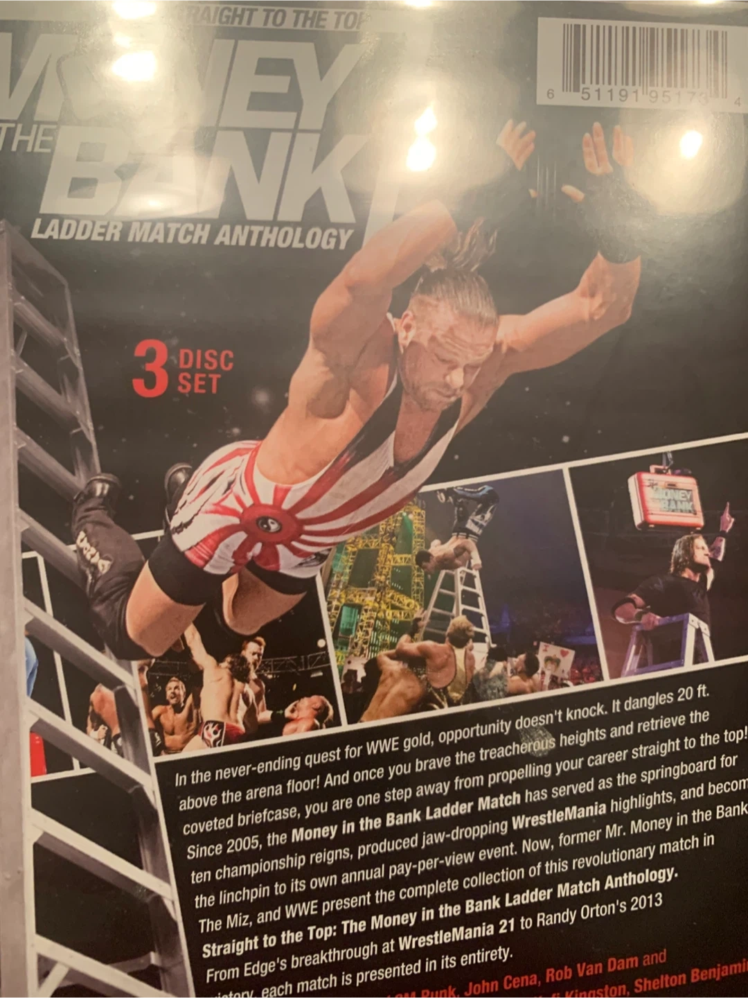 Selling a WWE Money in the Bank Ladder Match Anthology on a 3-disc set. It is in great condition and ready for a new home for any wrestling fan!