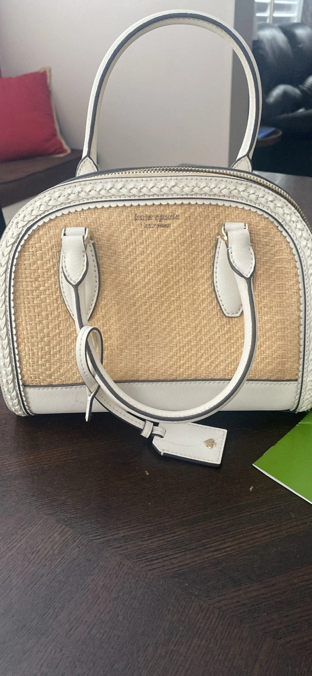 This Kate Spade satchel is perfect for everyday use and is in excellent used condition. It features a straw-style body with white leather accents and handles, as well as gold hardware. The interior is clean and spacious, ready to hold all your essentials! If the ad is up, it's available! Cash accepted.