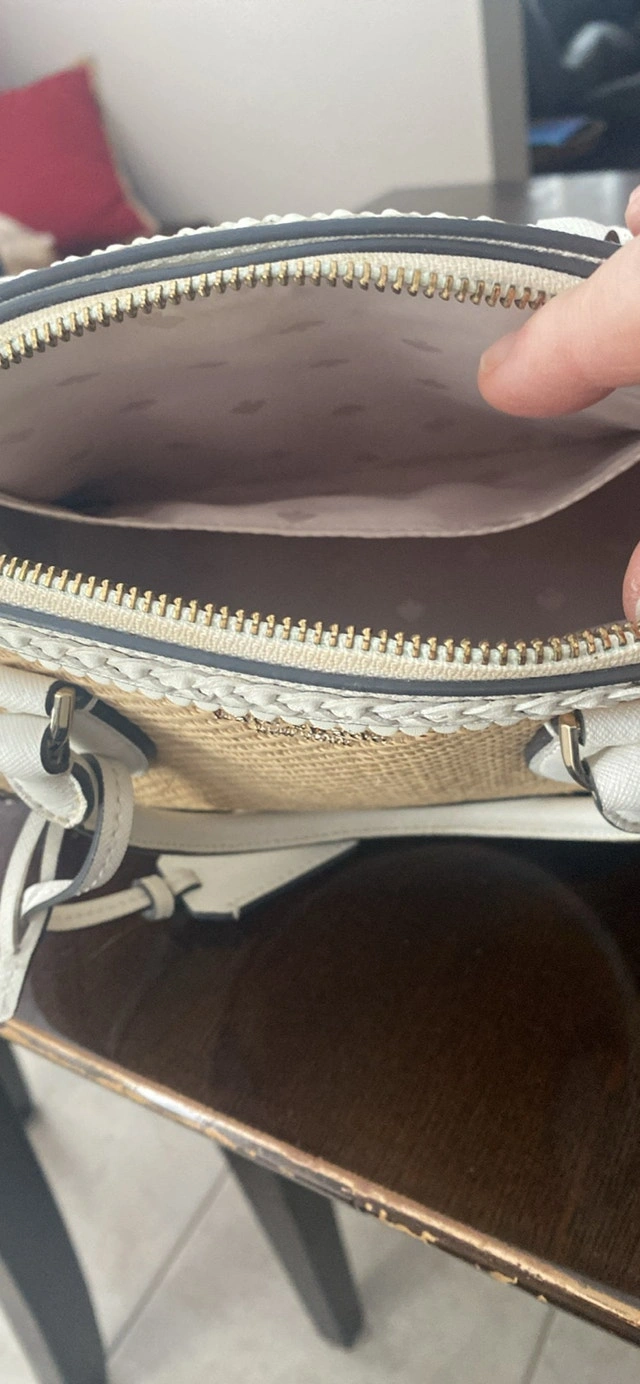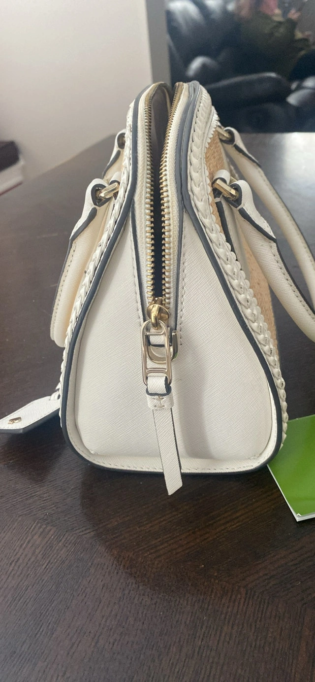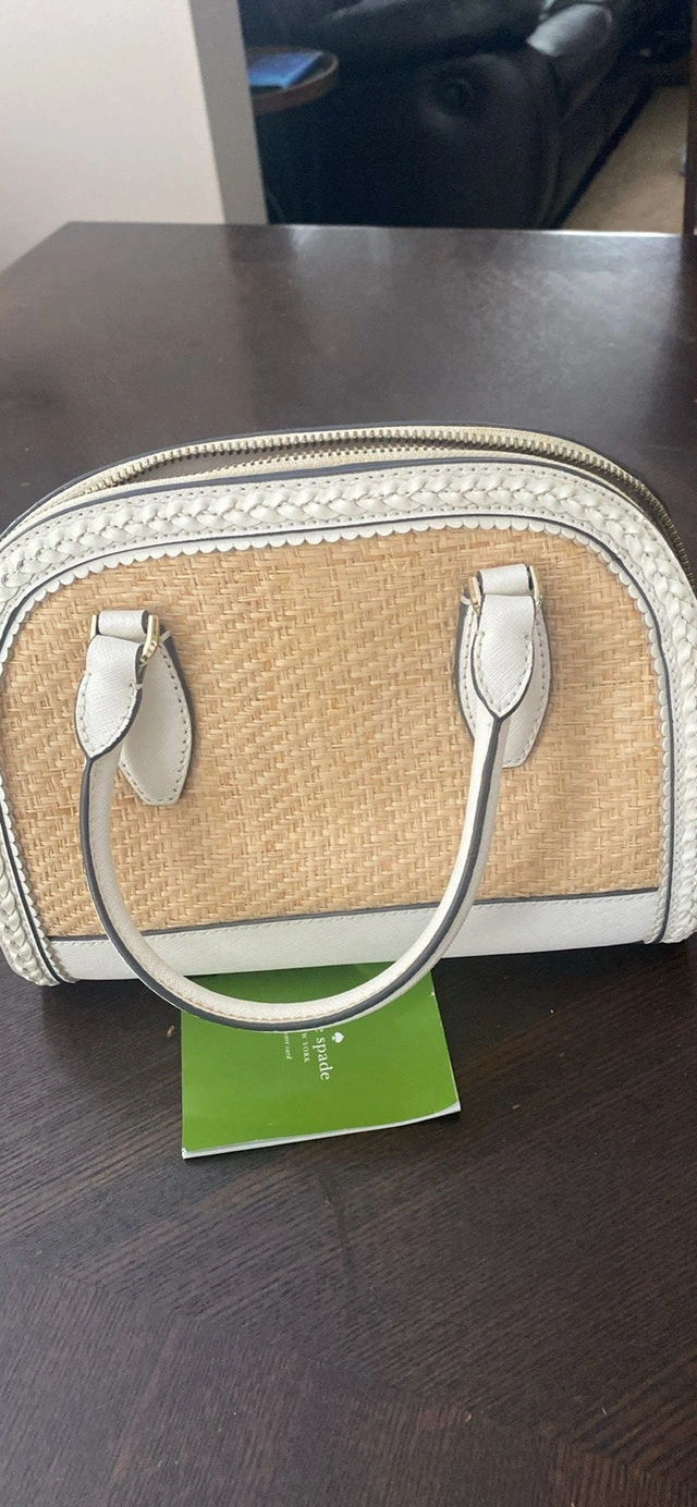 This Kate Spade satchel is perfect for everyday use and is in excellent used condition. It features a straw-style body with white leather accents and handles, as well as gold hardware. The interior is clean and spacious, ready to hold all your essentials! If the ad is up, it's available! Cash accepted.