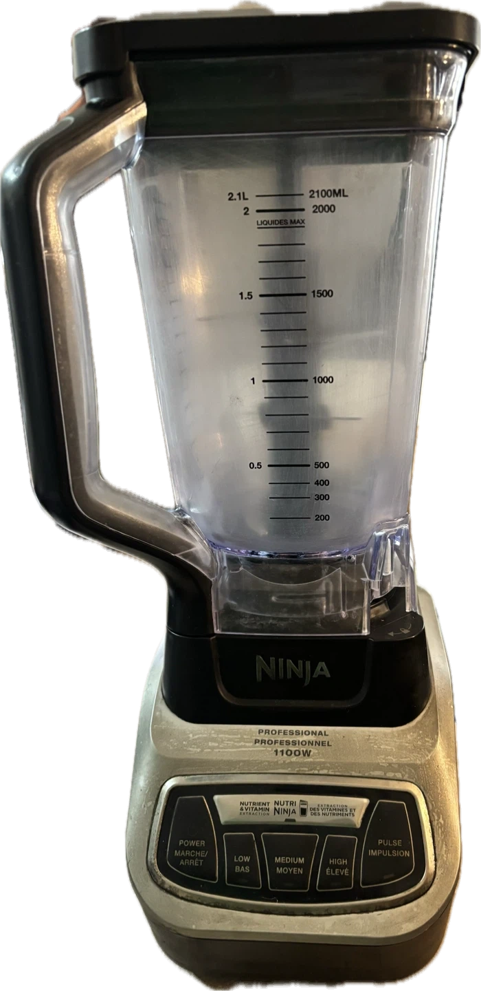This Ninja Professional blender has a 1100W motor. It features multiple speed settings and a pulse function. The pitcher has a maximum liquid capacity of 2.1 litres. Pick up in Terwillegar.