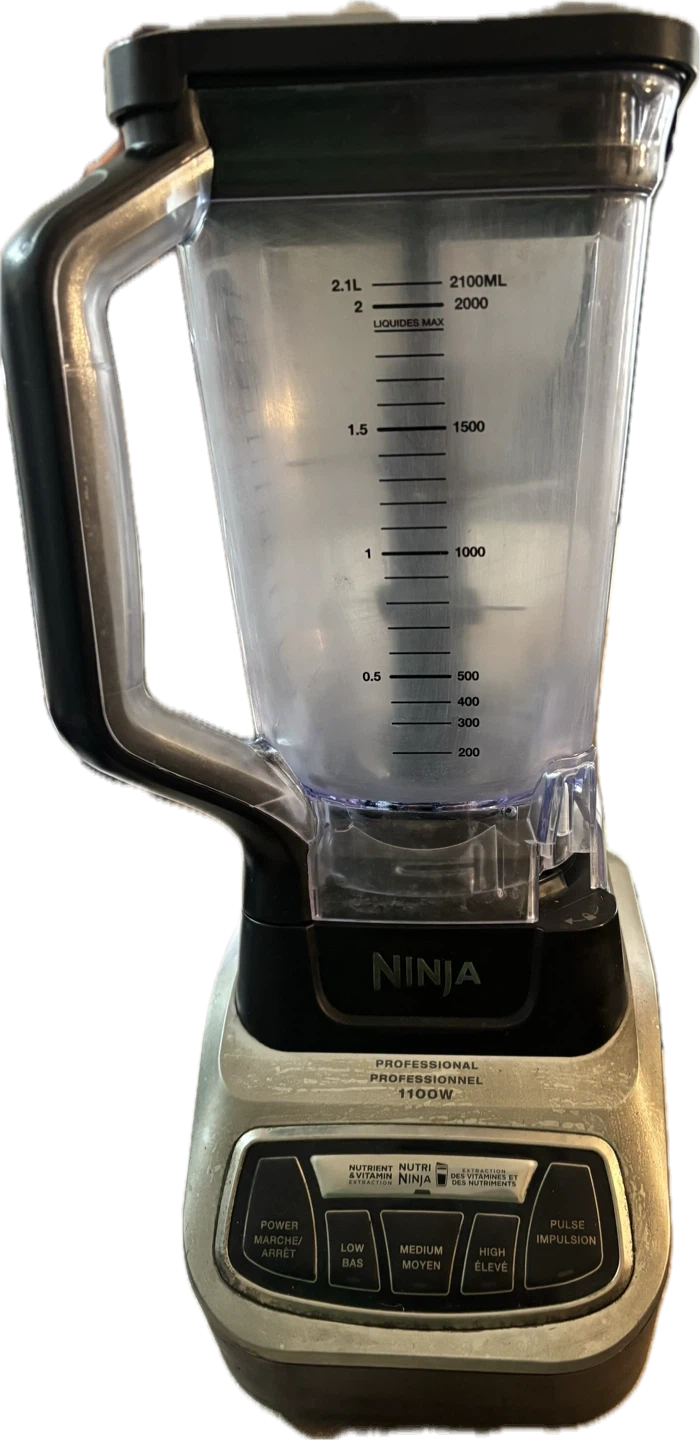 This Ninja Professional blender has a 1100W motor. It features multiple speed settings and a pulse function. The pitcher has a maximum liquid capacity of 2.1 litres. Pick up in Terwillegar.