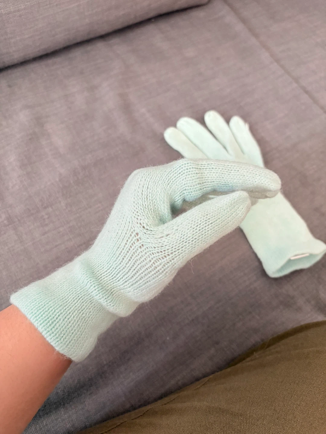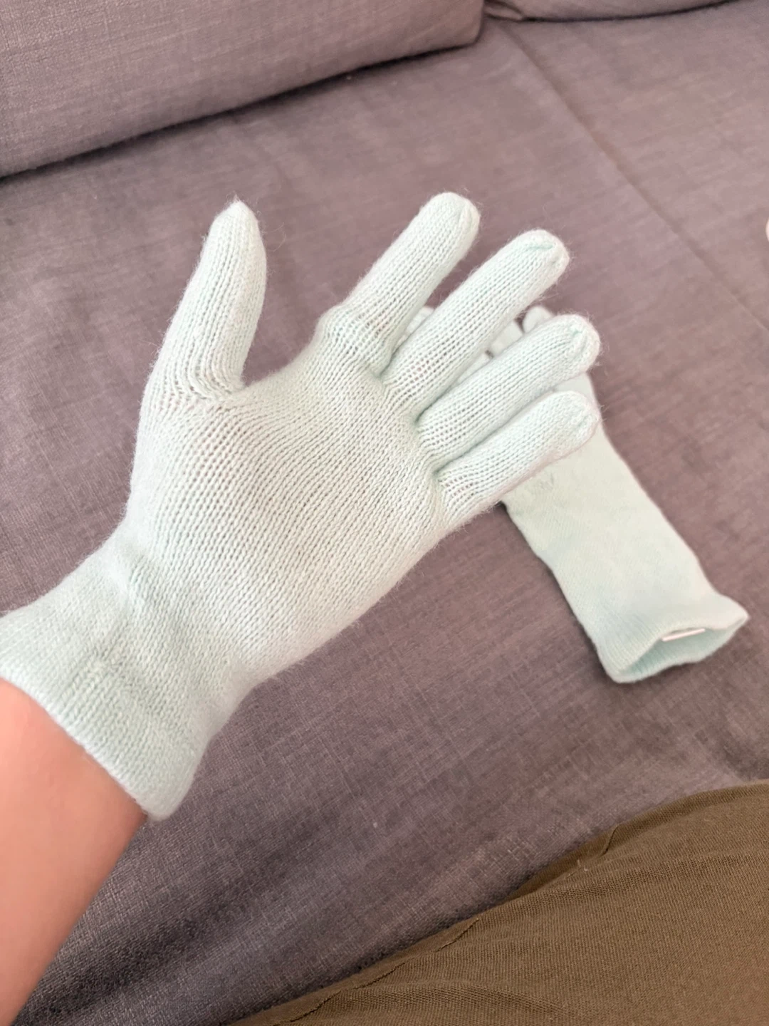 Keep your hands cozy with these gloves from New York & Company! They are made of 100% acrylic and come in a lovely light blue colour