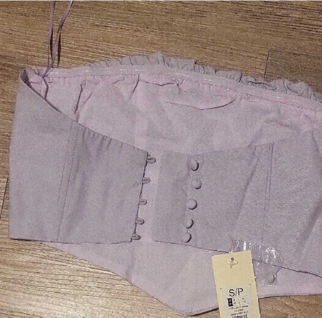 This is a Streetwear Society purple corset top, size small. It's in new condition with the tags still attached. A super cute addition to any closet! If this ad is still up, it's still available and ready to find a new home!