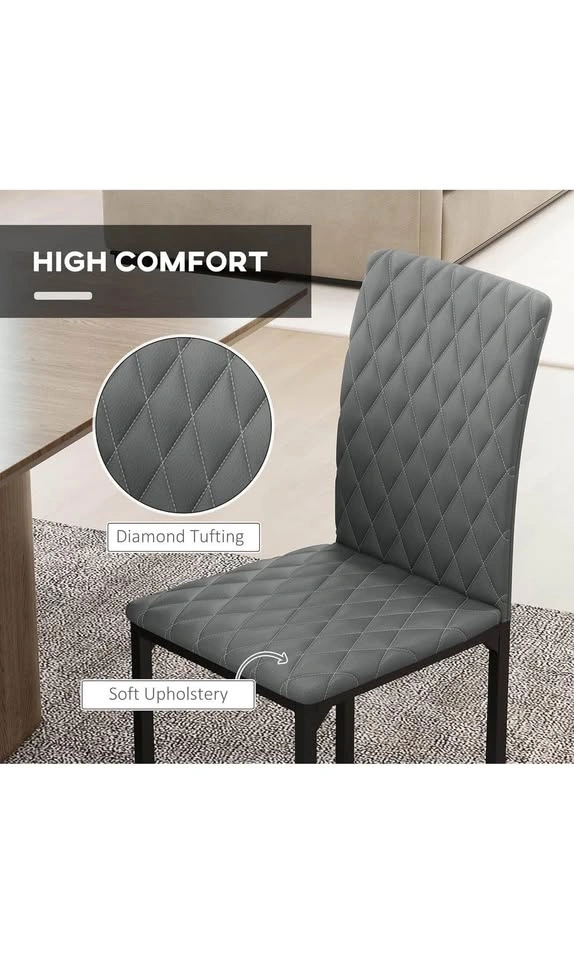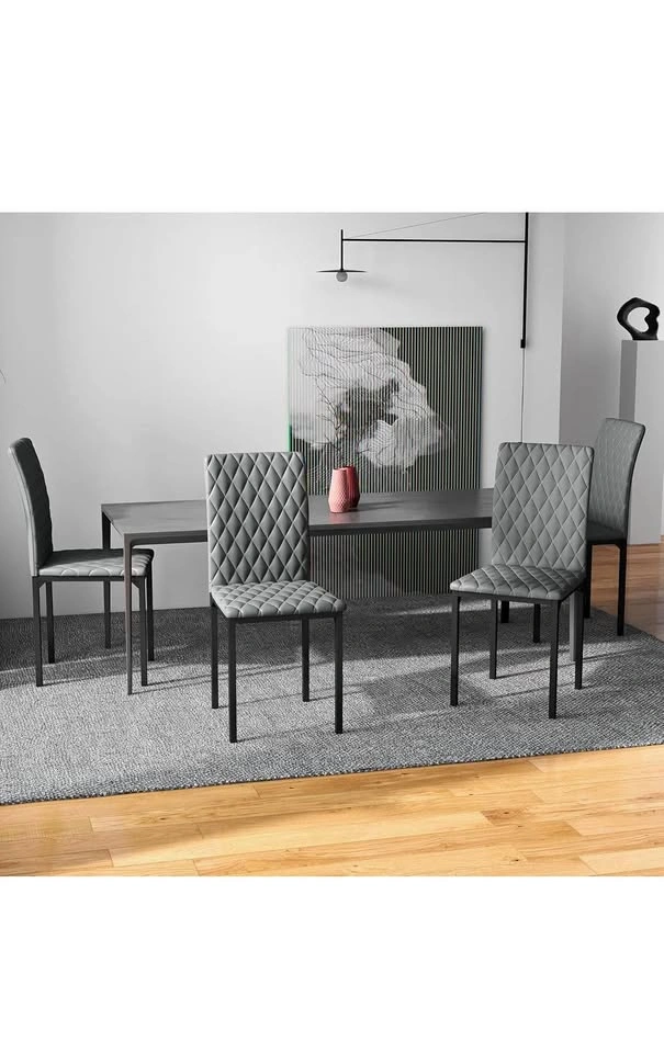 Modern Dining Chairs Set of 4, Upholstered Faux Leather Kitchen Chairs with Rhombic Tufting and Metal Legs for Living Room