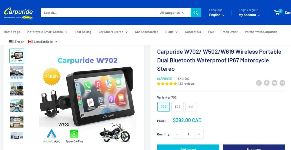 Carpuride W702PRO Motorcycle CarPlay & Android Auto