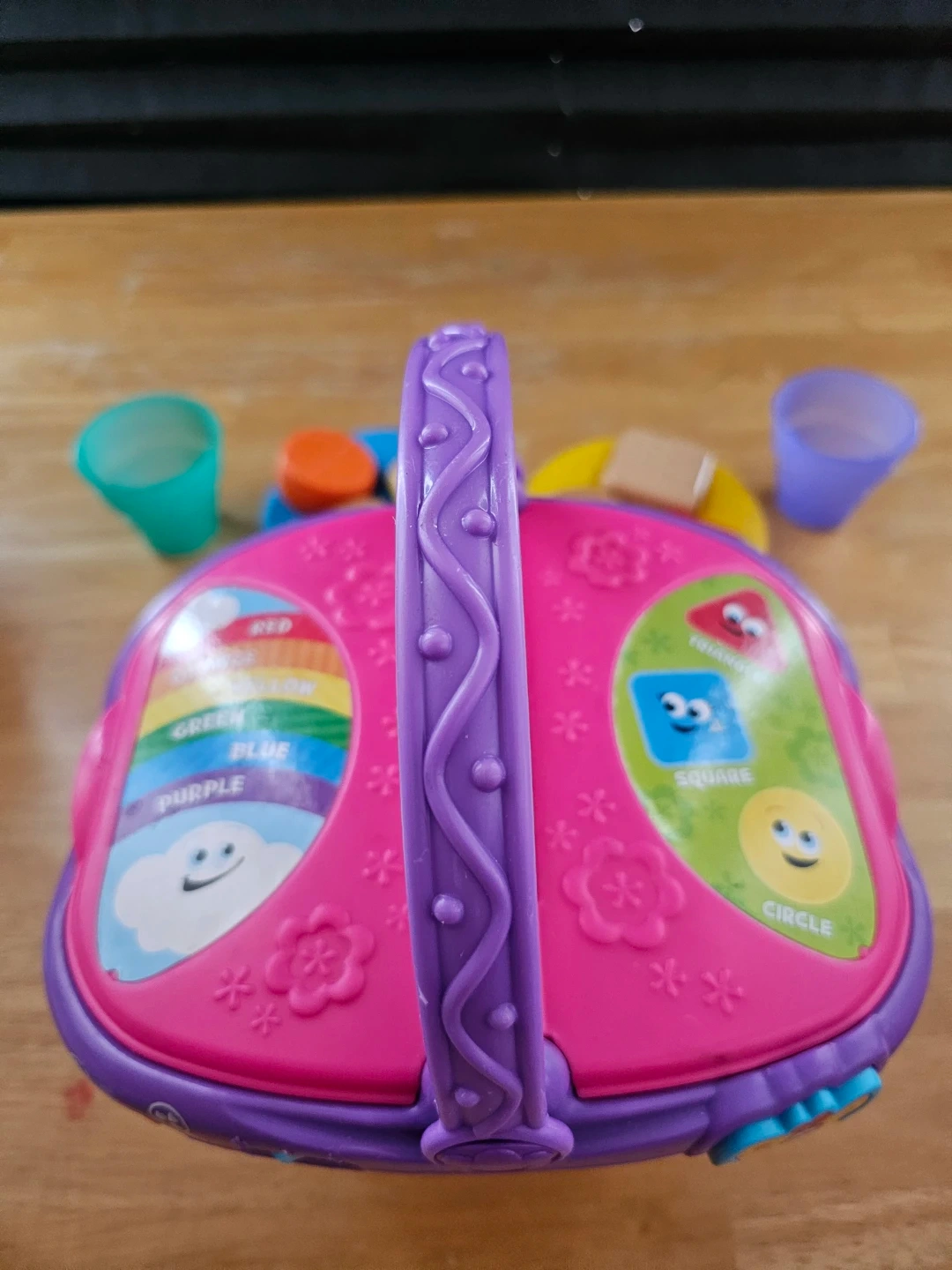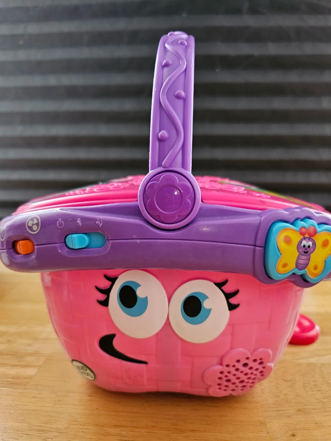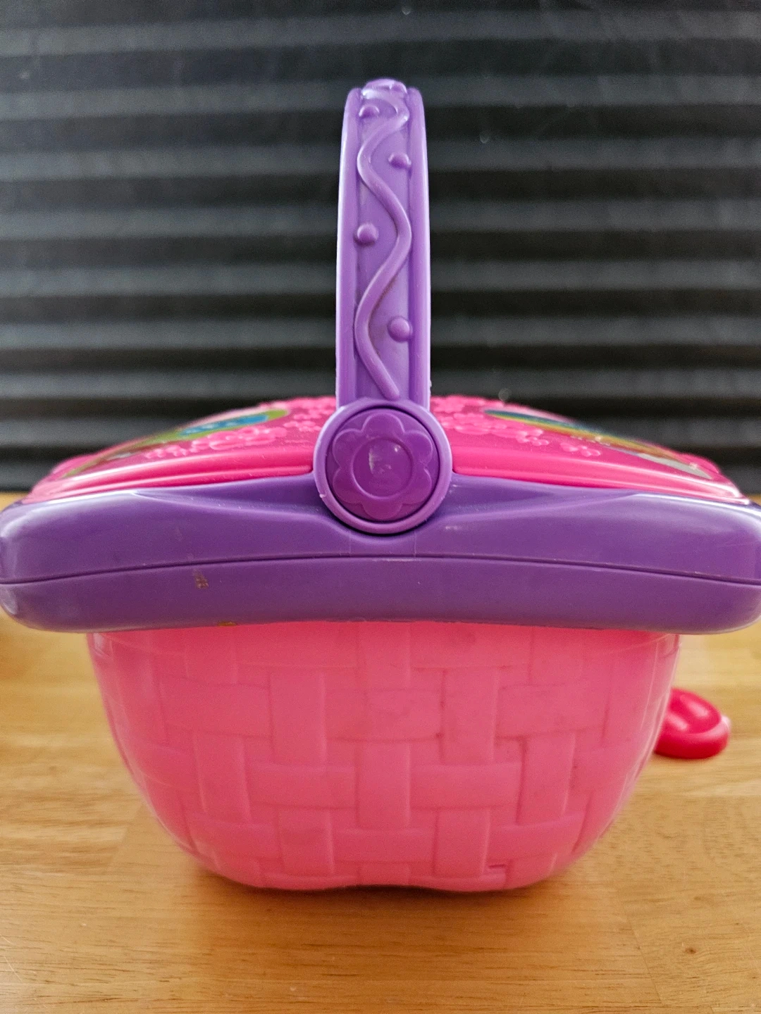 This LeapFrog basket teaches first words and includes fun music! It comes with food pieces like oranges, sandwiches, crackers, and watermelon. Also includes two cups and two forks for pretend play. Perfect for little ones learning to talk!