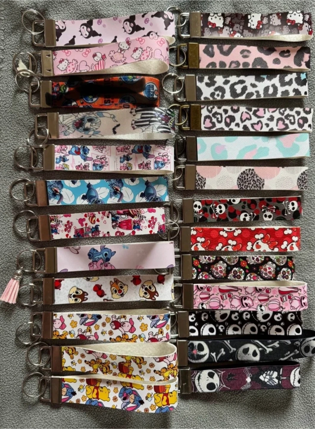 Check out these fun handmade fabric keychain wristlets! They're perfect for keeping your keys handy and adding a bit of personality to your everyday carry. Lots of different patterns to choose from!