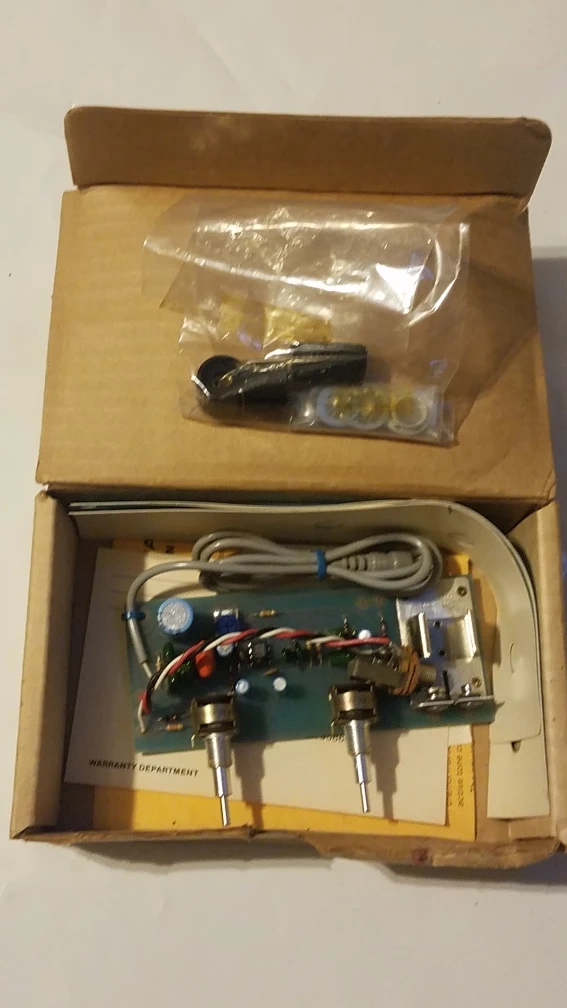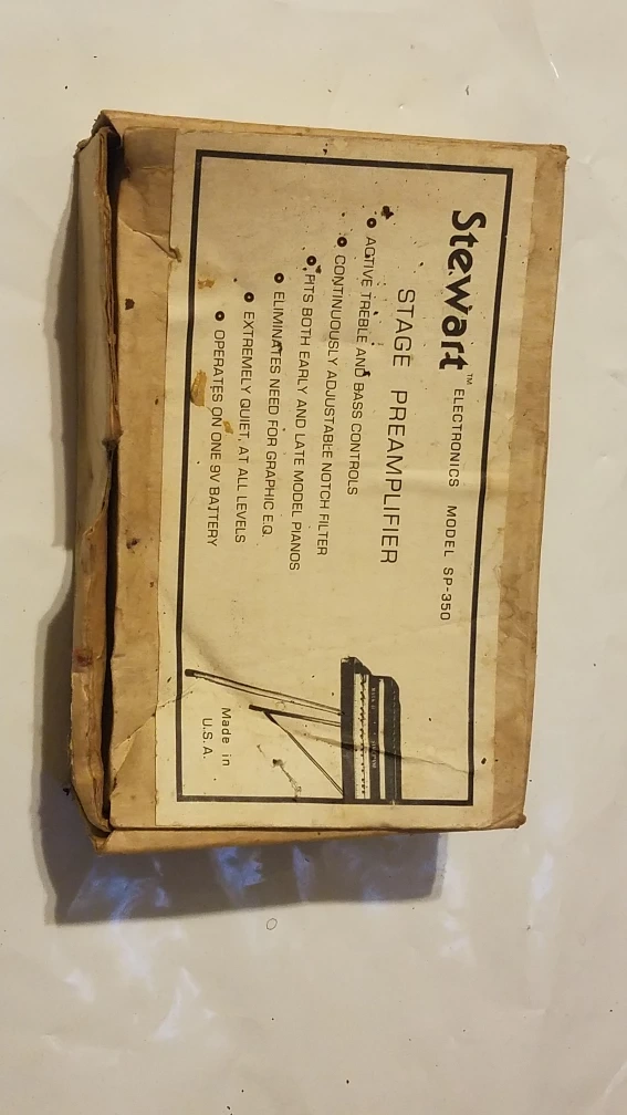 This is a Stewart SP-360 Stage Preamplifier. It features active treble and bass controls, a continuously adjustable notch filter, and is extremely quiet at all levels. Operates on a 9V battery. Includes original box and some accessories.