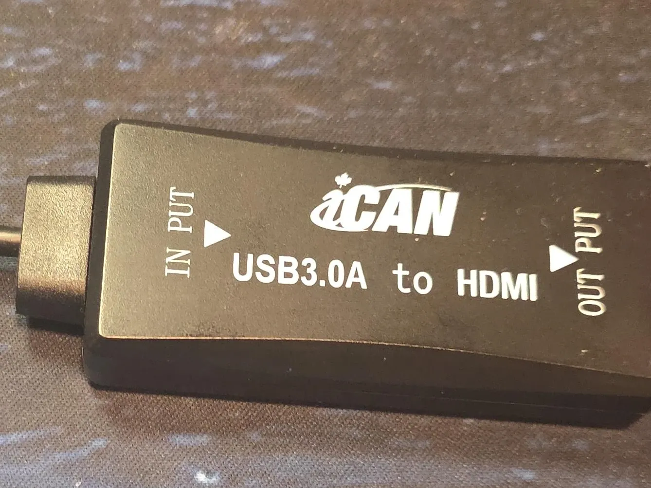 This iCAN adapter connects your USB 3.0 device to an HDMI display. It supports USB 3.0 input and HDMI output. It's great for extending your display capabilities!