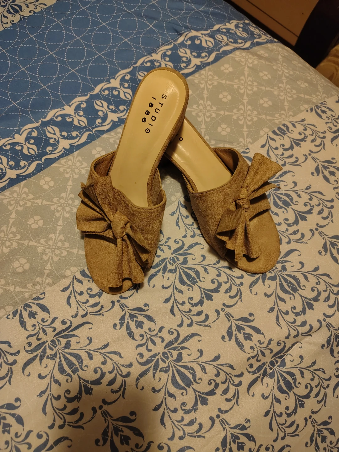 Cute Studio 1886 mules in a tan/brown colour. These have a fun bow detail on the front. Perfect for adding a touch of style to your everyday look!