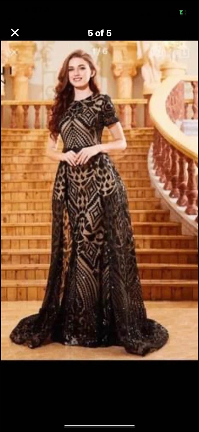 Black Sequin Mesh Evening Gown size L -xl