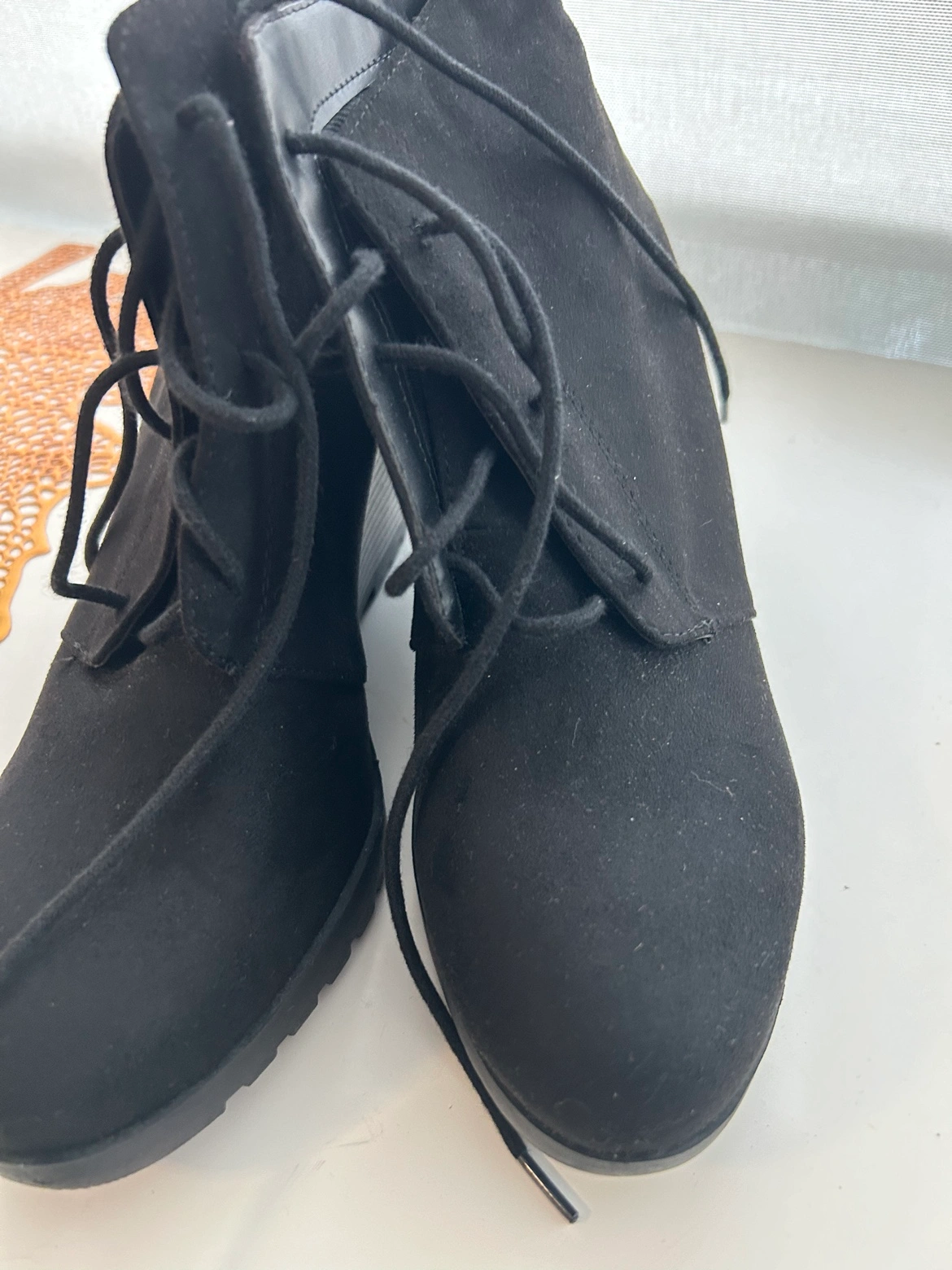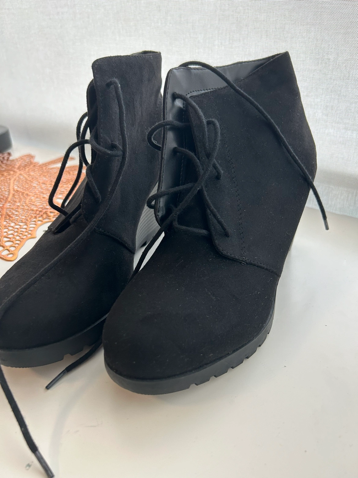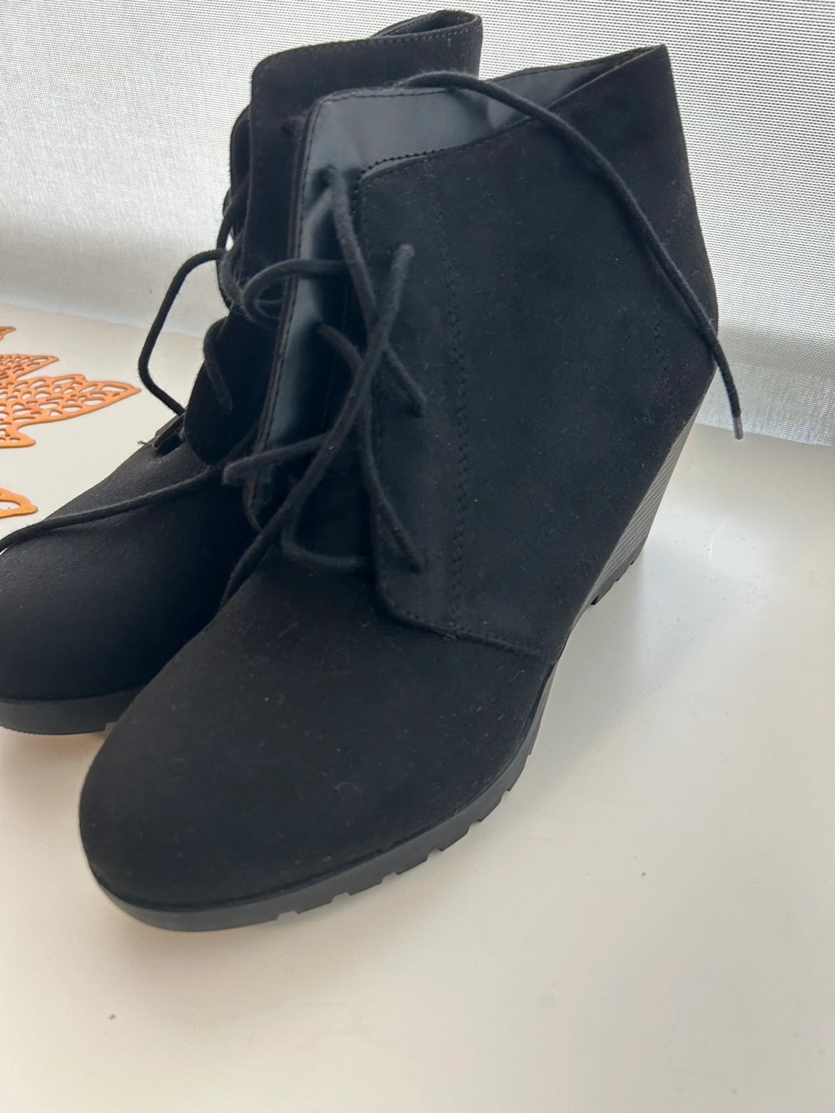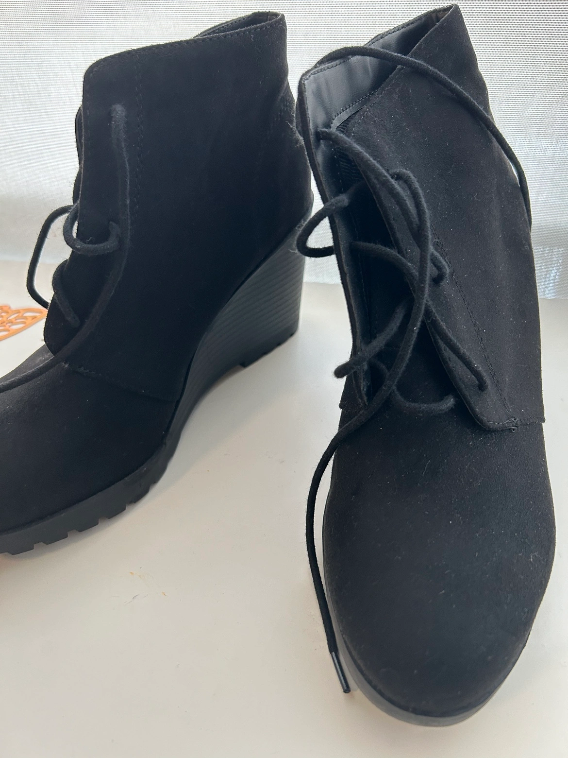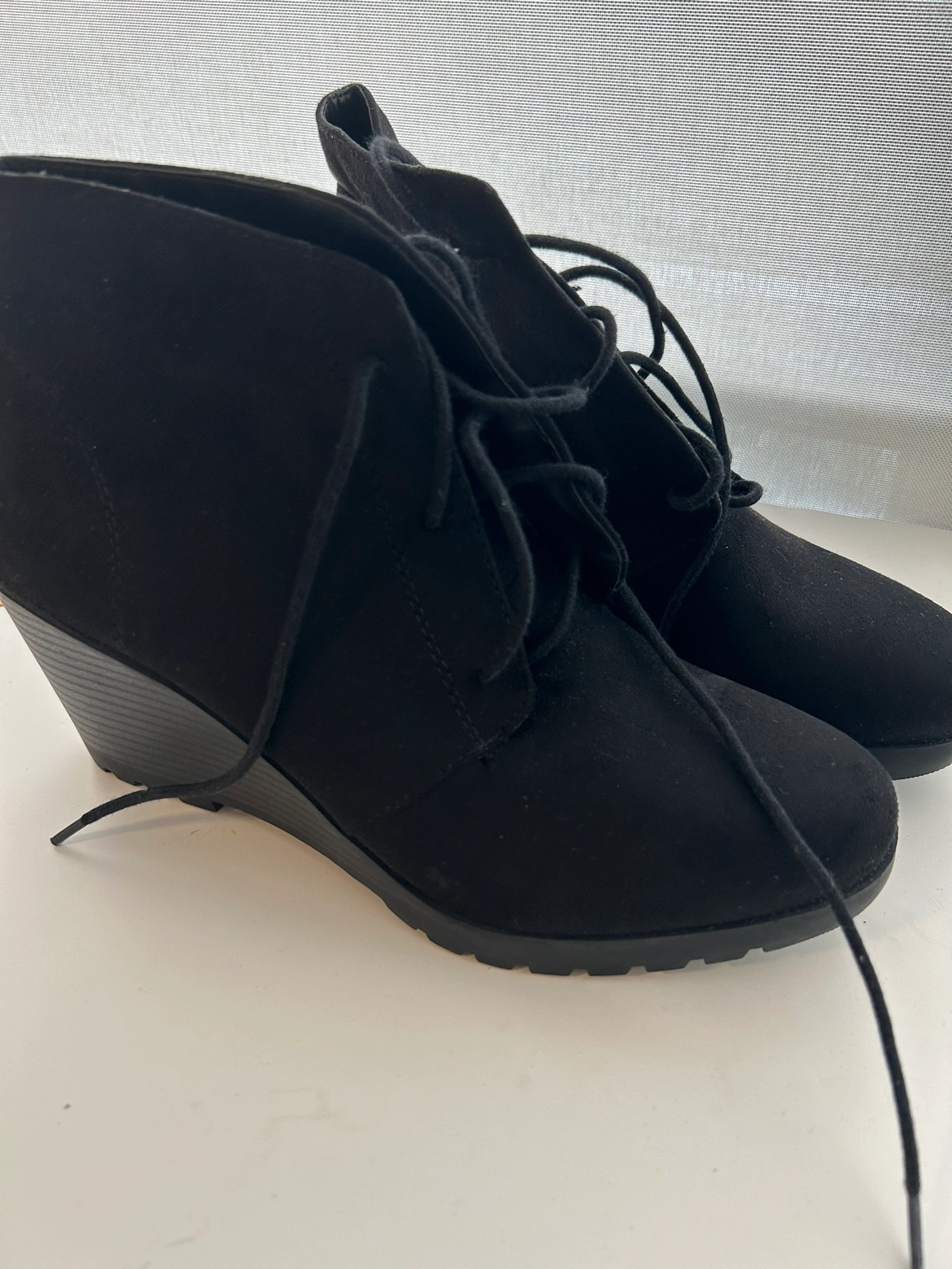 Buy & SellSuede Black Wedge BootiesSuede Black Wedge Booties$20Black suede wedge booties with lace up detail. Never worn before and I've had it for quite some timeConditionNewSize10 US women'sWHERE TO MEETUnityView MapSELLERTomiQueens362 reviews0 chats·1 favorites·17 viewsSEND CHAT TO SELLERHi Tomi! I’m interested in your listing.Hi Tomi! I’m interested in your listing.Get the Karrot app to chatSign In to chat
