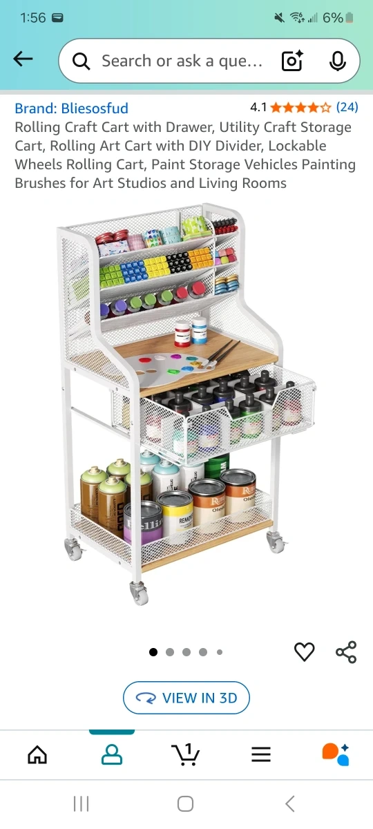 I'm selling a rolling craft cart with a drawer. It's a utility craft storage cart with a DIY divider. It also has lockable wheels, making it easy to move around your art studio or living room