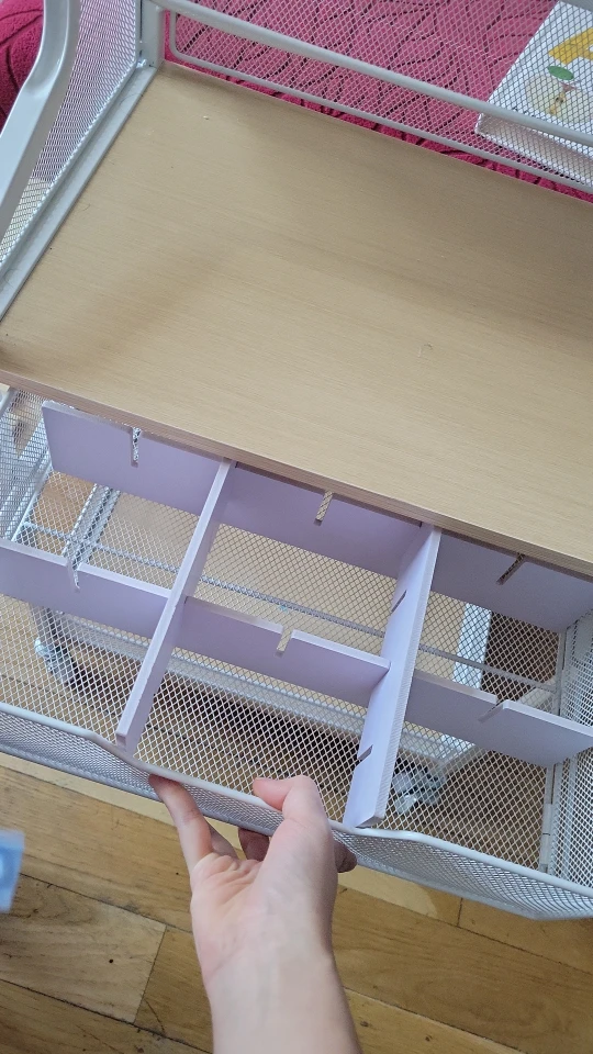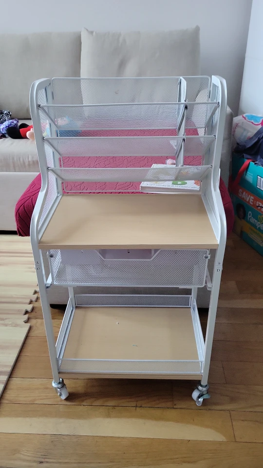 I'm selling a rolling craft cart with a drawer. It's a utility craft storage cart with a DIY divider. It also has lockable wheels, making it easy to move around your art studio or living room