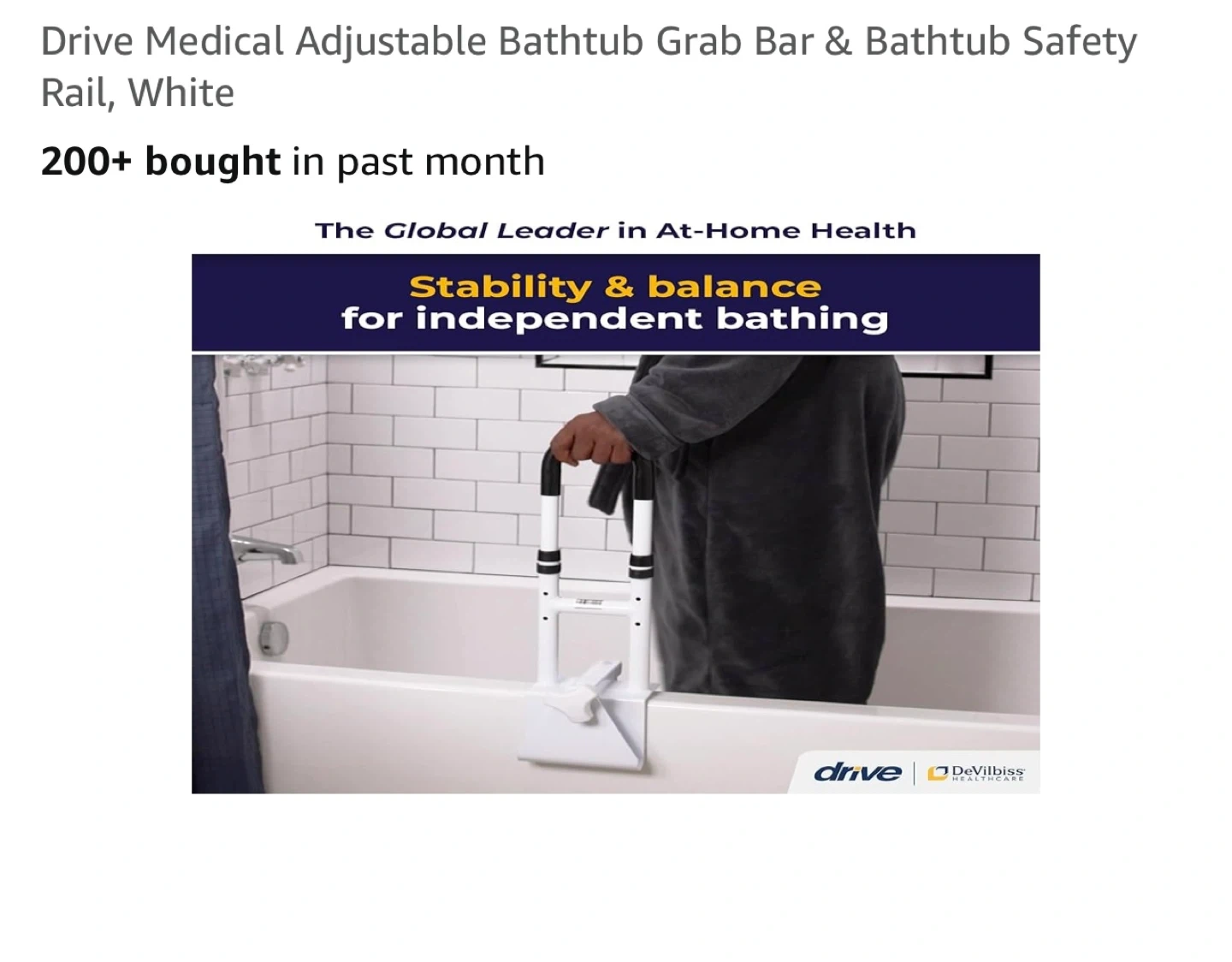 This Drive Medical adjustable grab bar provides stability and balance for independent bathing. It's made of sturdy, durable powder-coated steel and supports up to 300 lbs. The width adjusts from 3"-7" and height from 14.5"-17". It features an enhanced safety non-slip handle and installs tool-free in seconds. Who would this be useful for? Anyone seeking extra support in the bathtub!
