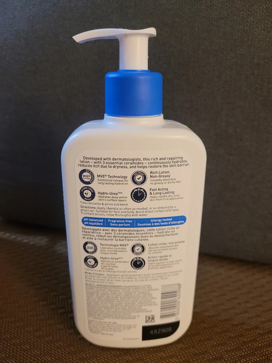 This CeraVe Intensive Moisturizing Lotion is developed with dermatologists. It's for dry to very dry skin and helps restore the skin's barrier. The lotion provides 3 essential ceramides & shea butter for continuous hydration. 355 ml bottle.