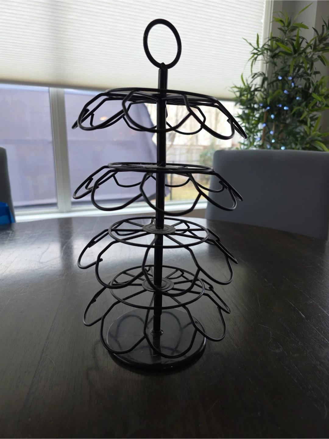 117Here's a handy black 3-tier coffee pod holder! It's great for keeping your coffee pods organized and within easy reach. Perfect for any coffee lover! Asking $10. Located in Cougar Ridge.
