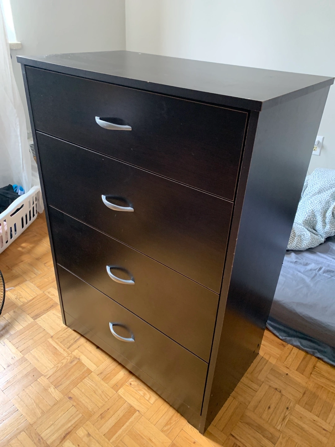Buy & SellBlack 5-Drawer Chest of DrawersBlack 5-Drawer Chest of Drawers$30Dark brown dresser. 4 drawers. Silver drawer pulls. Good used condition.Dimensions15.5 x 27.5 x 39"2 chats·0 favorites·49 viewsSELLERVictorConestoga College151 reviewWHERE TO MEETStarbucks Hickory Street