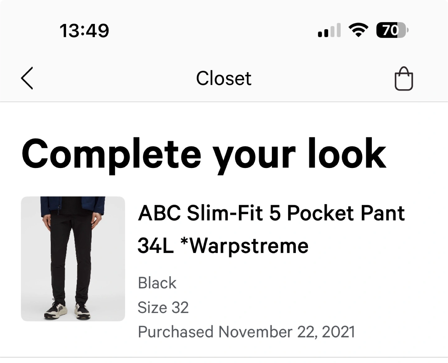 Black ABC pants from Lululemon Athletica offer a sleek and tailored fit, perfect for both casual and dressy occasions. Lightly used like new. Size 32 34 L Color: Black