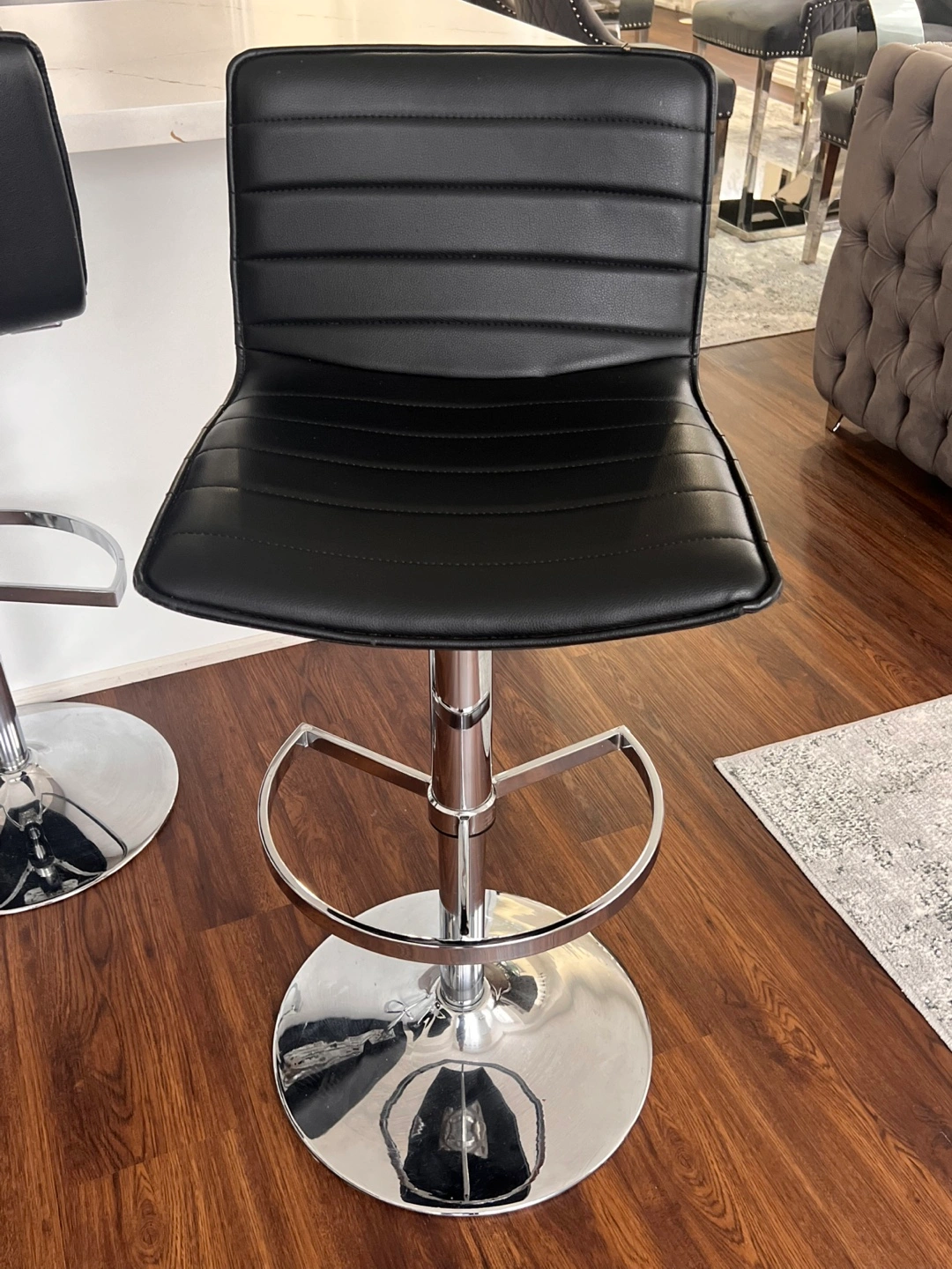 Selling a stylish black bar stool with an adjustable height. It's in great condition and would look great in any kitchen or bar area. The seat is comfortable and easy to clean. Let me know if you're interested! $100/each