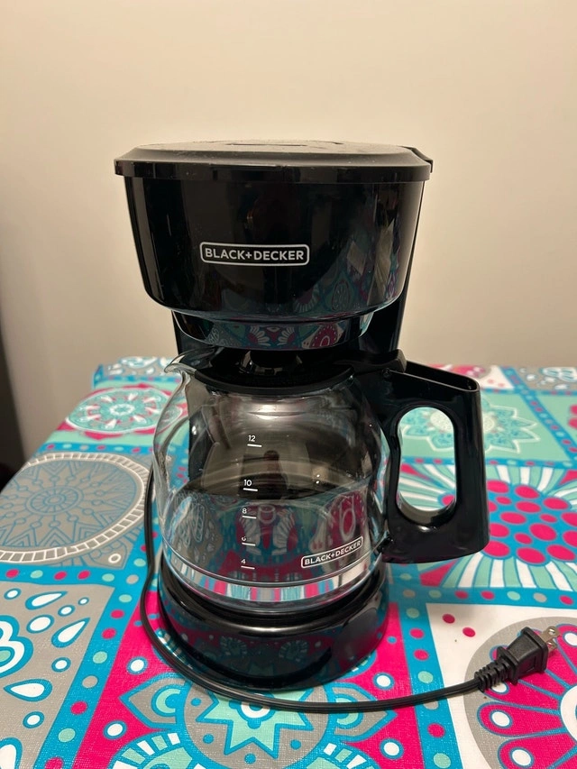 156Brew your perfect cup with this Black and Decker 12-Cup Coffee Maker. This used coffee maker is in good working condition, ready to deliver rich, flavourful coffee every morning. Here are some details: * Brand: Black and Decker * Capacity: 12 Cups * Colour: Black