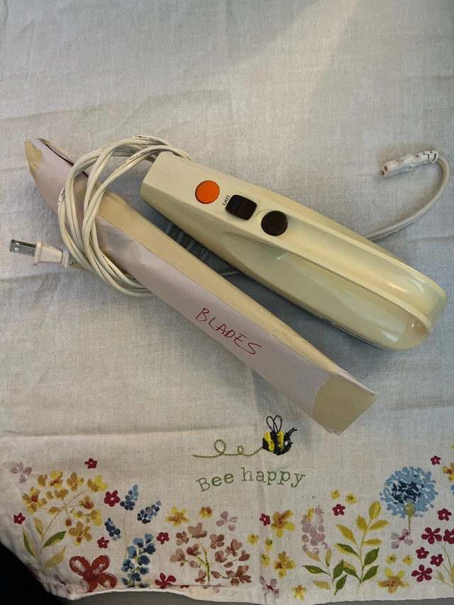 This is a Black and Decker electric carving knife, perfect for slicing through meats and poultry with ease, featuring a vintage design. As you can see from the photos, this item is used and shows signs of wear, but it is still in good working condition. * Brand: Black and Decker * Type: Electric Carving Knife * Colour: White Looking to slice through your Sunday roast like a hot knife through butter? This vintage electric knife might just be the ticket! Please note that if the ad is up, it's still available for purchase!