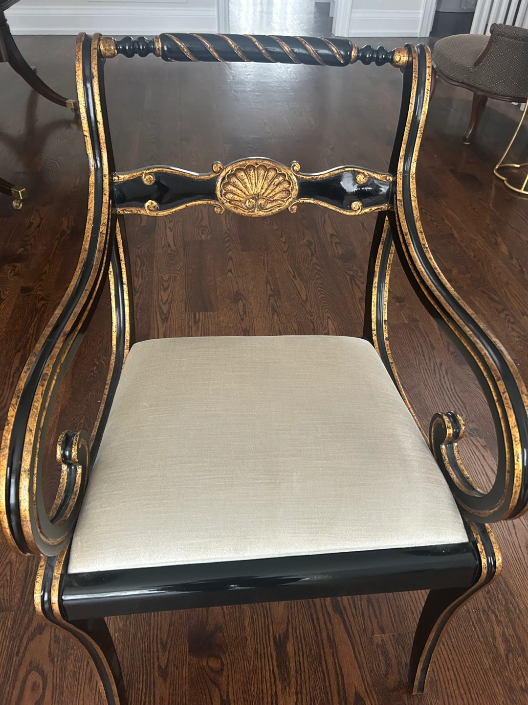 10In excellent condition, including the fabric which has no stains etc. There are 2 chairs available if you are interested in more than one. They are identical. Pictures don’t do them justice. They unfortunately don’t work in the new space; otherwise would have kept them