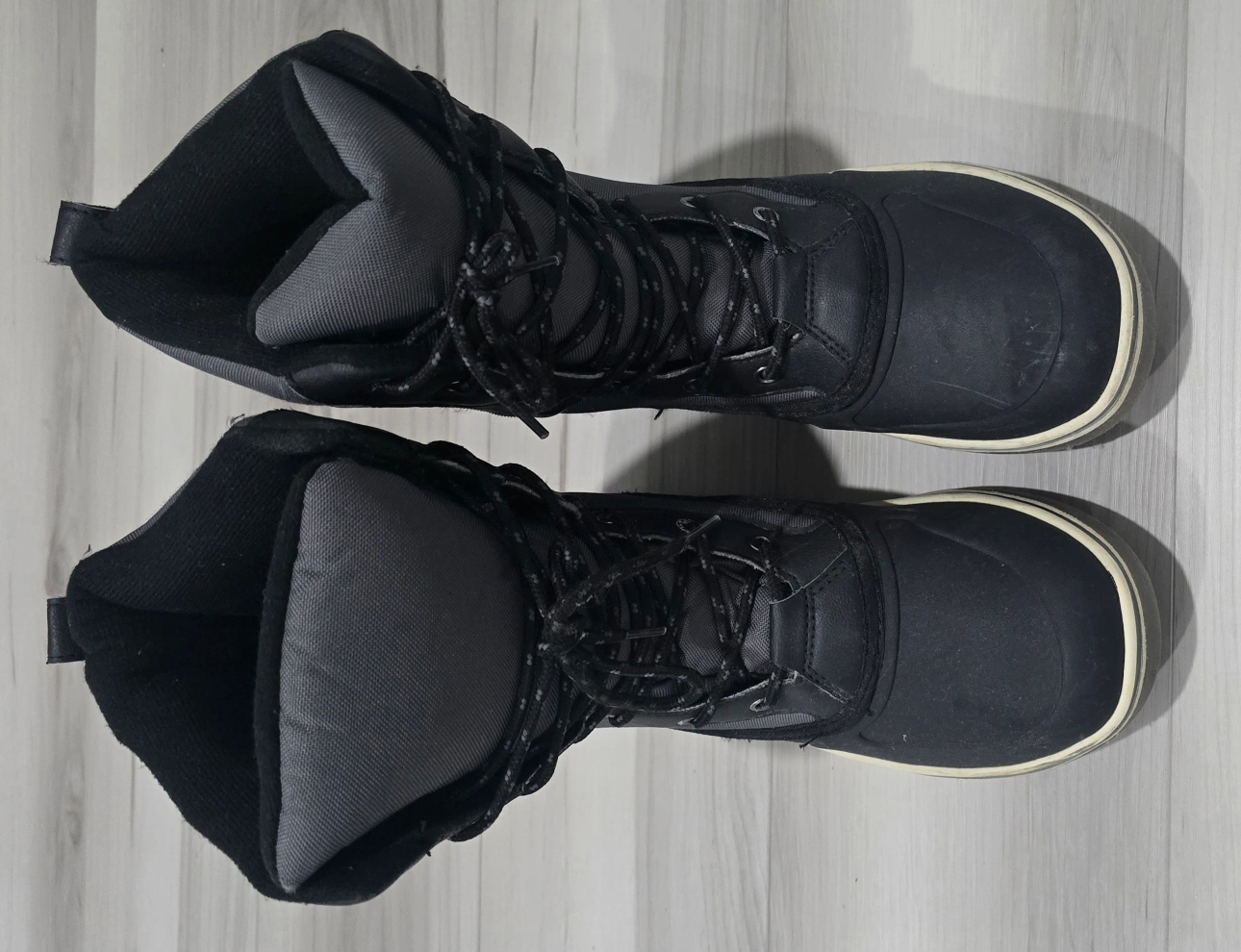 Warm winter boots. Lace-up closure. Black and grey colour scheme. Good for snow.
