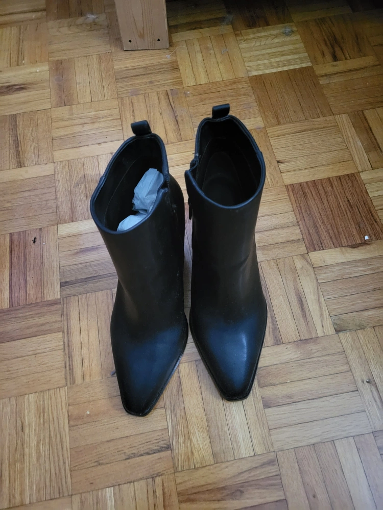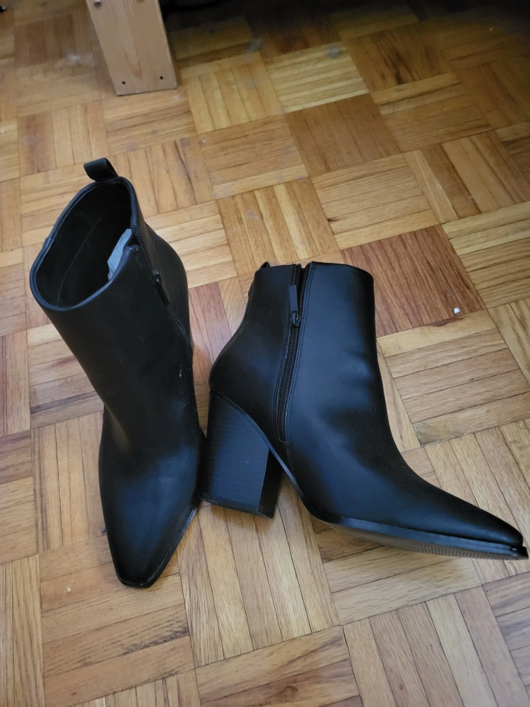 10Selling a pair of black ankle boots. They have a sleek, pointed toe and a chunky heel. Perfect for adding a bit of edge to any outfit! pick up only cash only