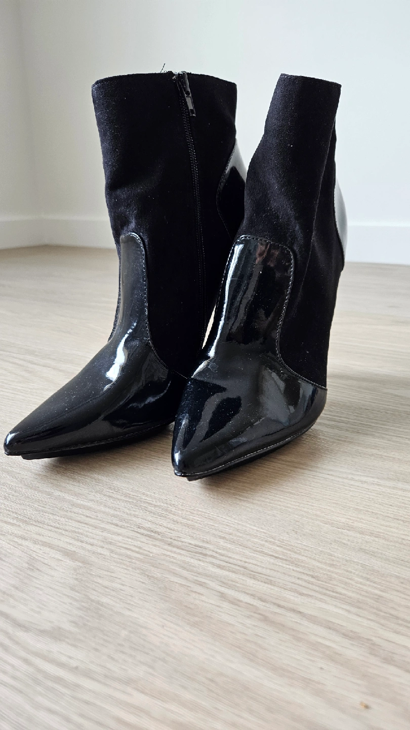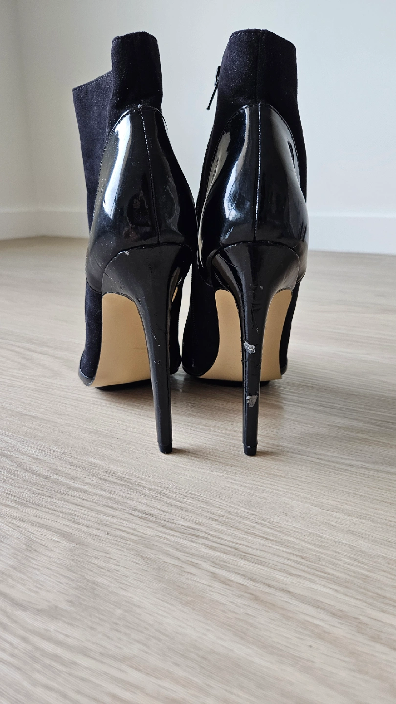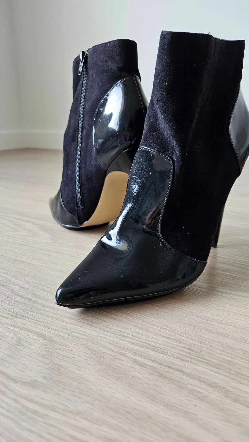15These black ankle boots are in good condition and ready for a new home! They feature a sleek design with a pointed toe and a stylish heel. Perfect for adding a touch of elegance to any outfit