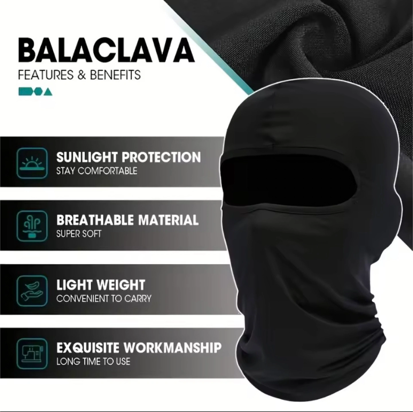 BUY 2 GET 1 FREE!๐๐ Selling a brand new black balaclava ski mask! It's made with breathable material that's also super soft. It's lightweight and convenient to carry, offering sunlight protection to stay comfortable. The mask measures approximately 6.7 inches wide and 13.7 inches long.