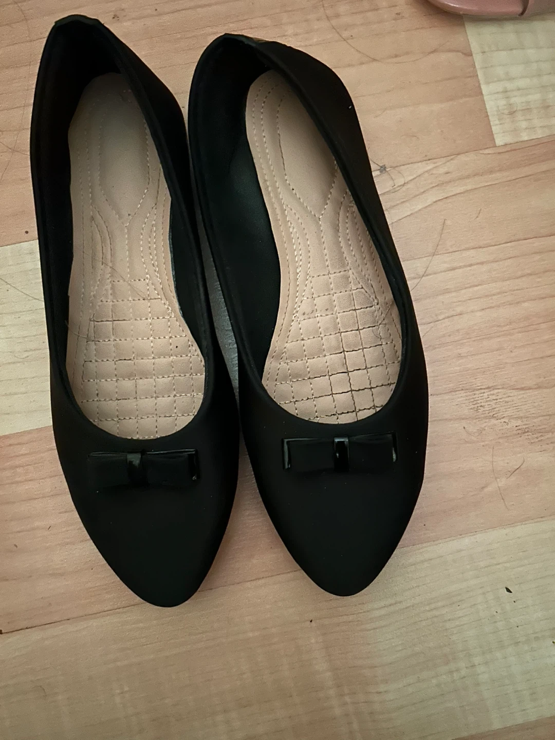 20Cute pair of black ballet flats, perfect for everyday wear! They're in great condition and are a size 7. The simple bow detail adds a touch of elegance. Ready for a new home!