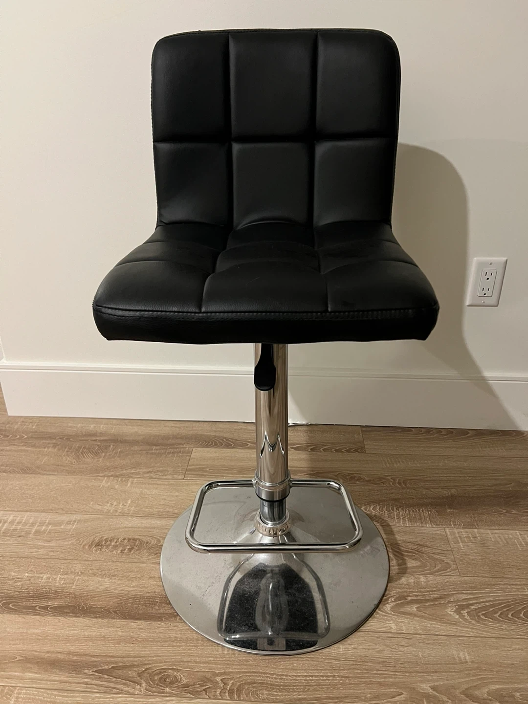 HomeBuy and sellBlack Bar Stool with Chrome BaseXuyingStonington Park681 reviewBlack Bar Stool with Chrome BaseFurniture · $19Selling a black bar stool with a chrome base. It has a padded seat and back for extra comfort. There is a small tear on the back of the chair, as pictured.ConditionGoodWhere to meetBroadside0 chats·0 favourites·2 viewsGet the Karrot app to chatOther listings by XuyingIKEA VANGSTA Extendable Dining Table - White$90Stonington ParkFramed Wall Mirror$41Stonington ParkGreen Loveseat Sofa$7Stonington ParkBlack Bar Stool with Chrome Base$19Stonington ParkFloral Patterned Footstool$12Stonington ParkDorel Home Furnishings Baby Mattress$17Stonington Park