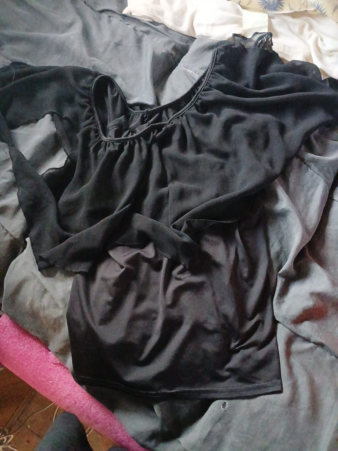 15Selling a black blouse. It's in good condition and ready for a new home! It features a flowy design.