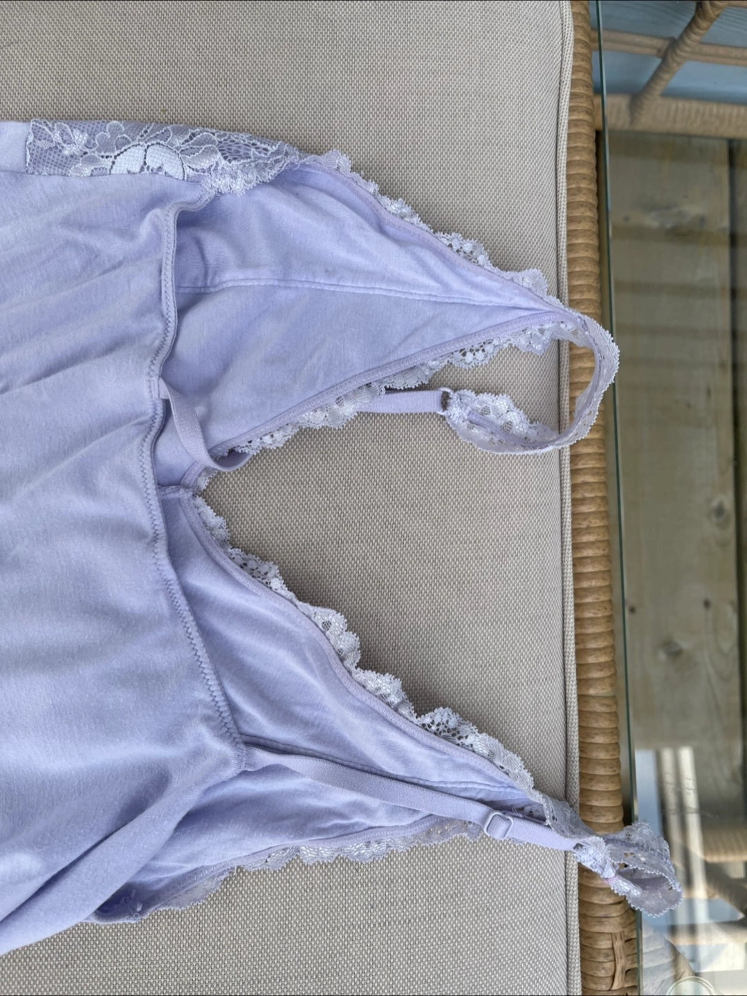 Selling a cute cami top from Black Bow in a lovely lilac colour. It has lace detailing around the top and adjustable straps. Perfect for layering or wearing on its own!