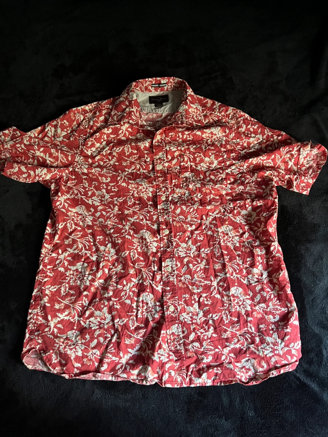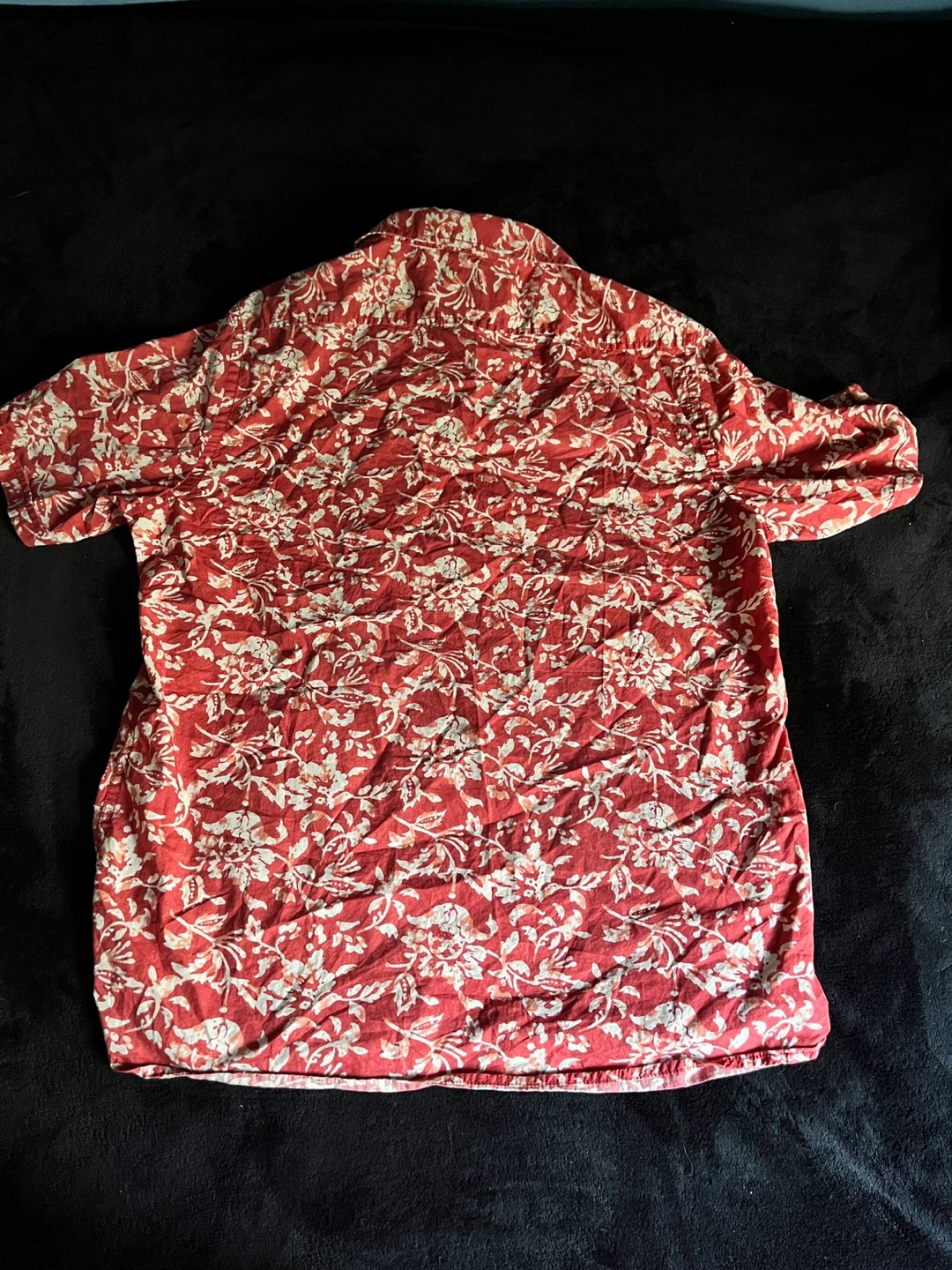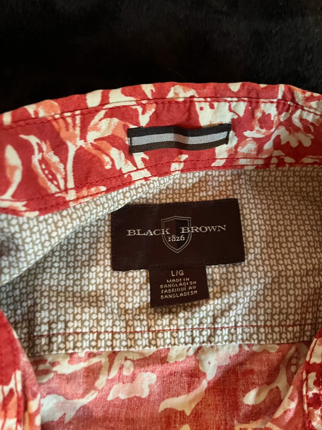 Selling a Black Brown 1826 shirt in size L. It has a red and white floral pattern. Great for a casual look!