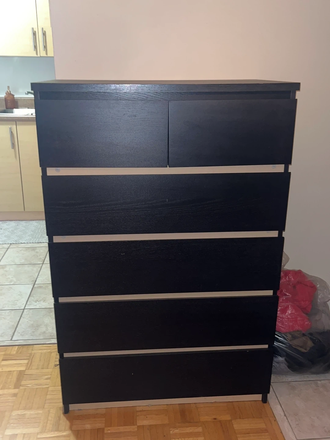 Selling a gently used IKEA Hemnes dresser in black-brown. It features six spacious drawers, perfect for organizing your clothes and keeping your room tidy. This dresser is a great addition to any bedroom!