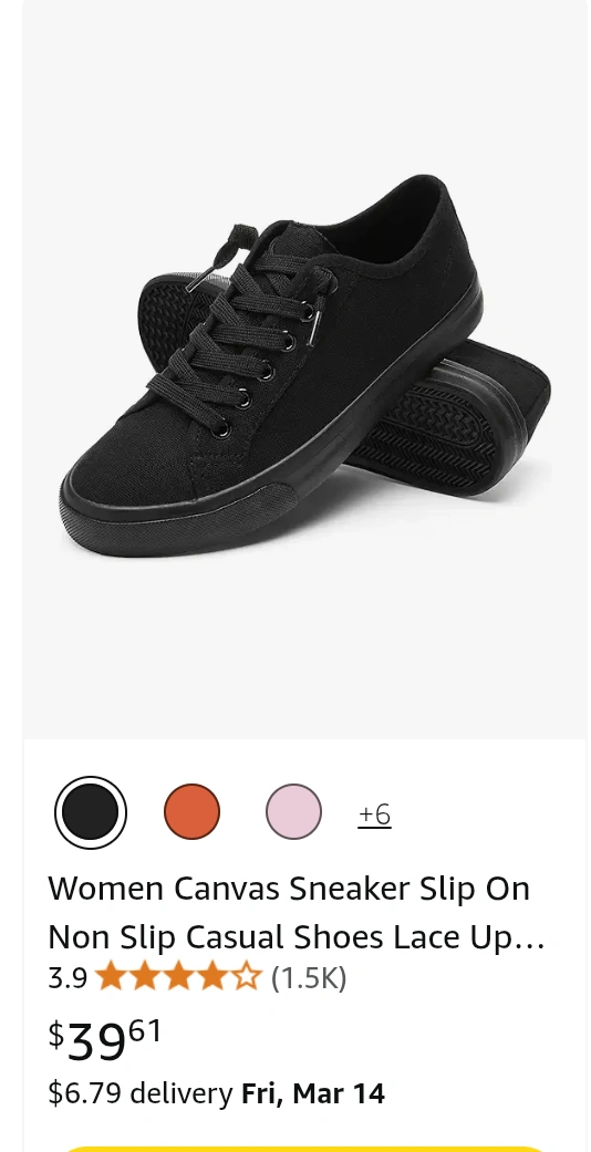 110Women's black canvas sneakers. Non-slip casual shoes. too narrow for wide 39 size, runs smaller