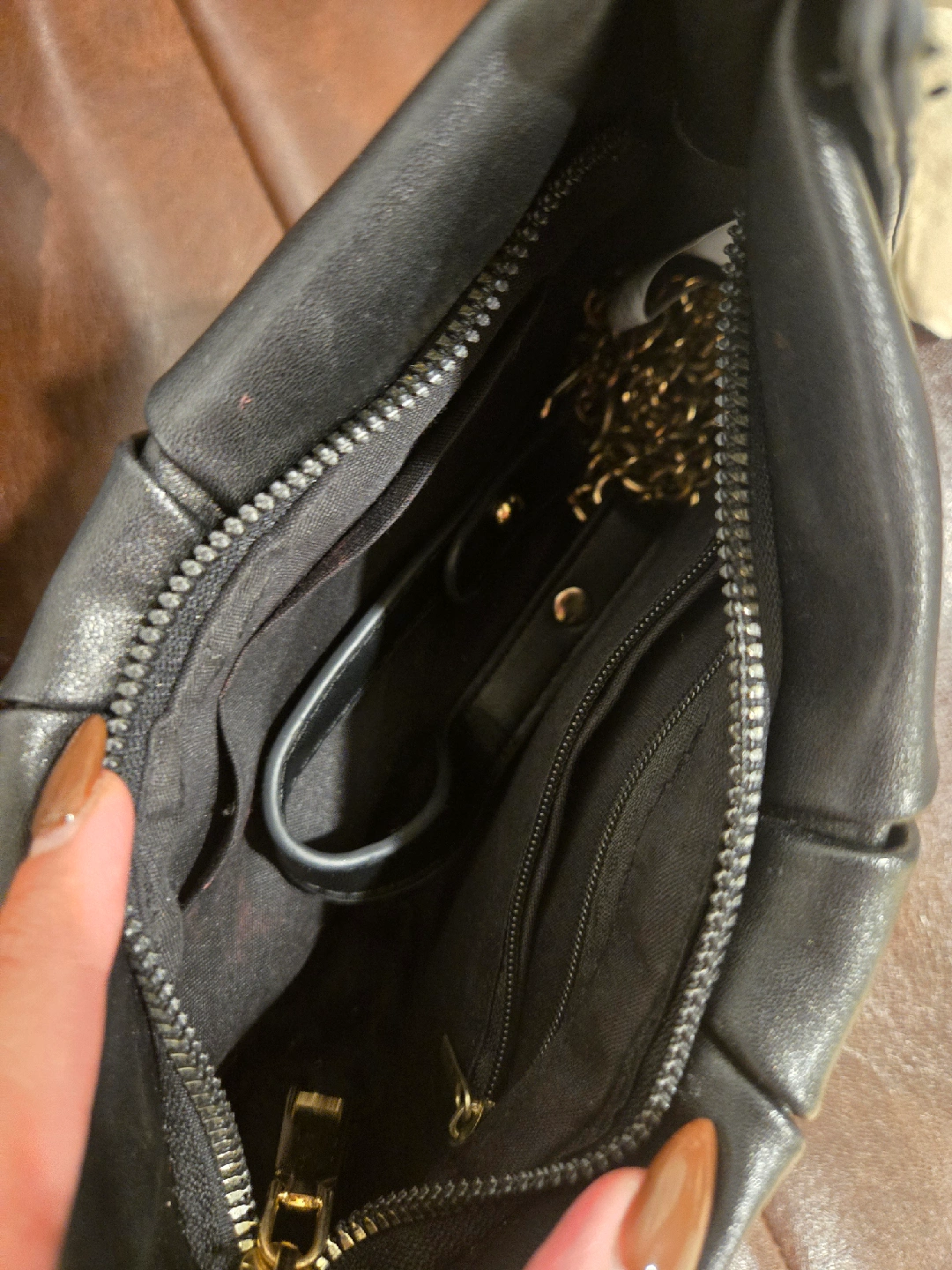 15Selling a stylish black shoulder bag with a chain handle. It's in great condition and perfect for everyday use or a night out. The bag features a zipper closure with additional pockets.