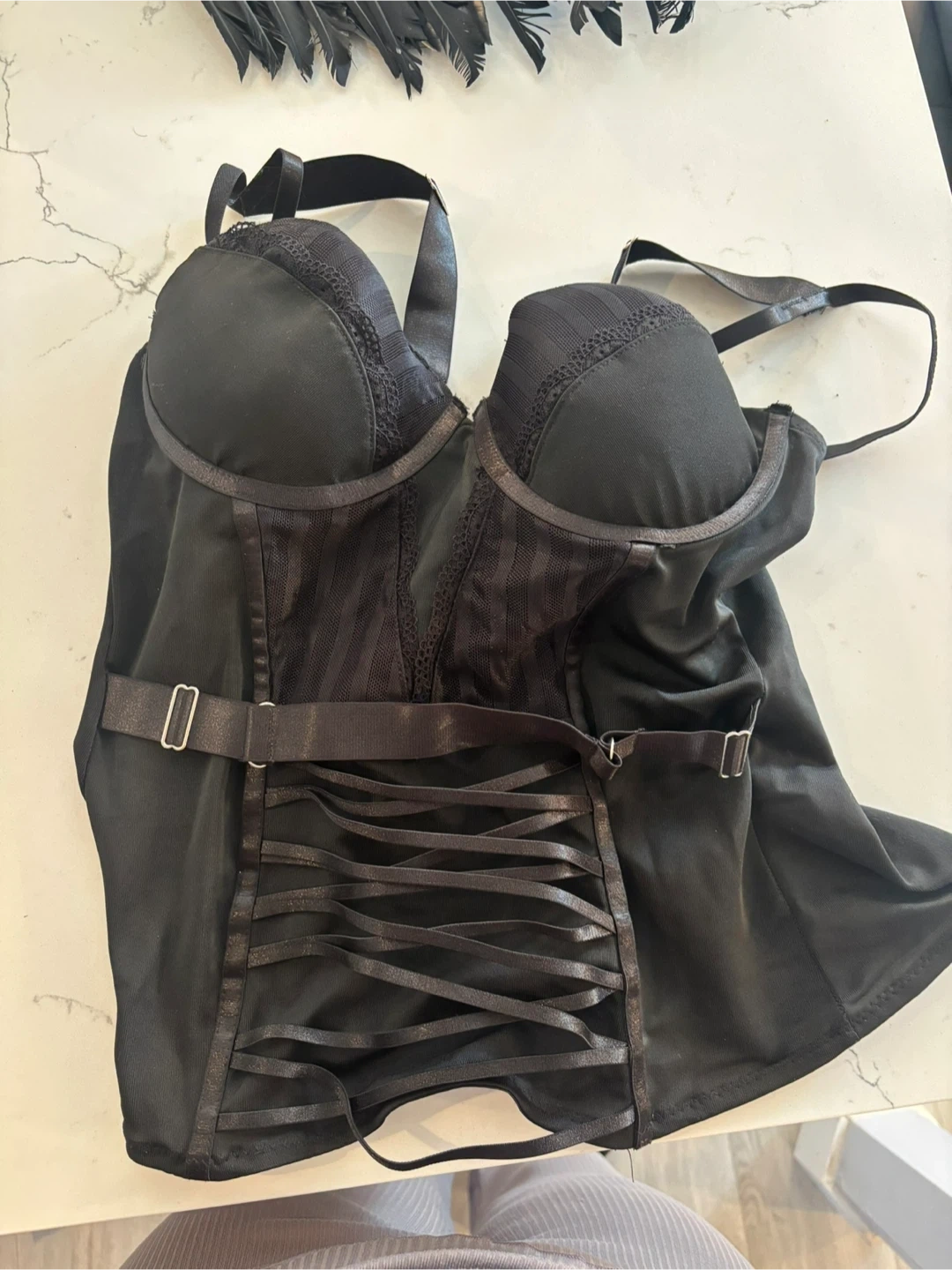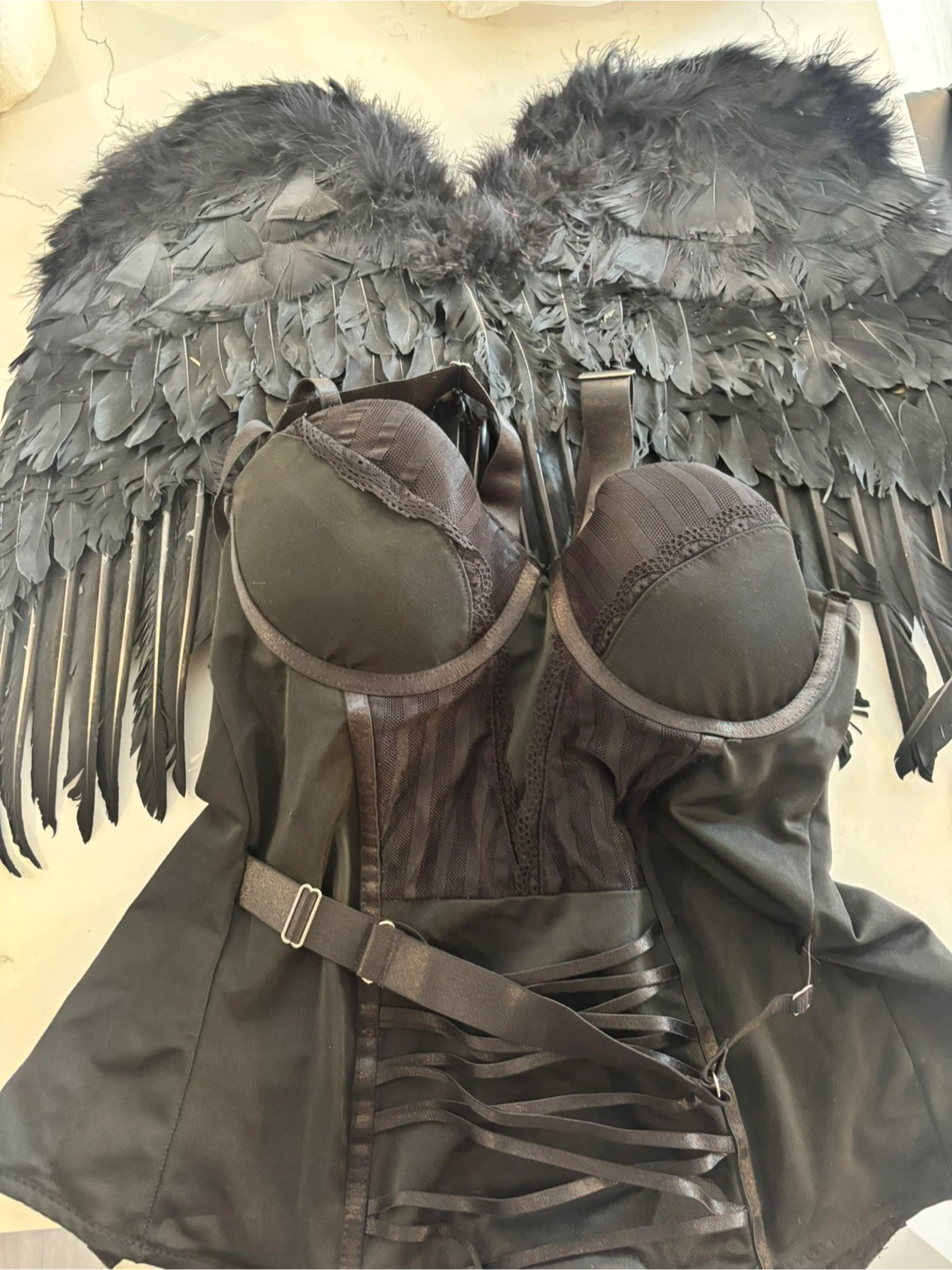 Selling a black corset and a pair of black feather wings. They're in great condition and perfect for a costume or cosplay!